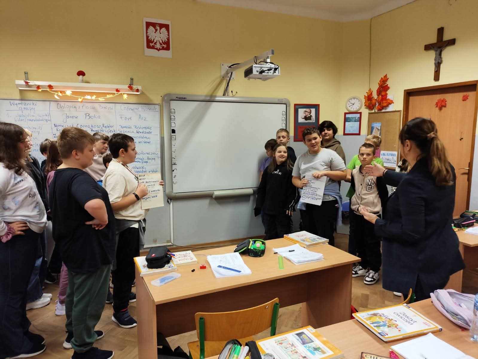 Aktywna lekcja języka polskiego w klasie 5b poświęcona pracy z lekturą „Chłopcy z placu broni”.