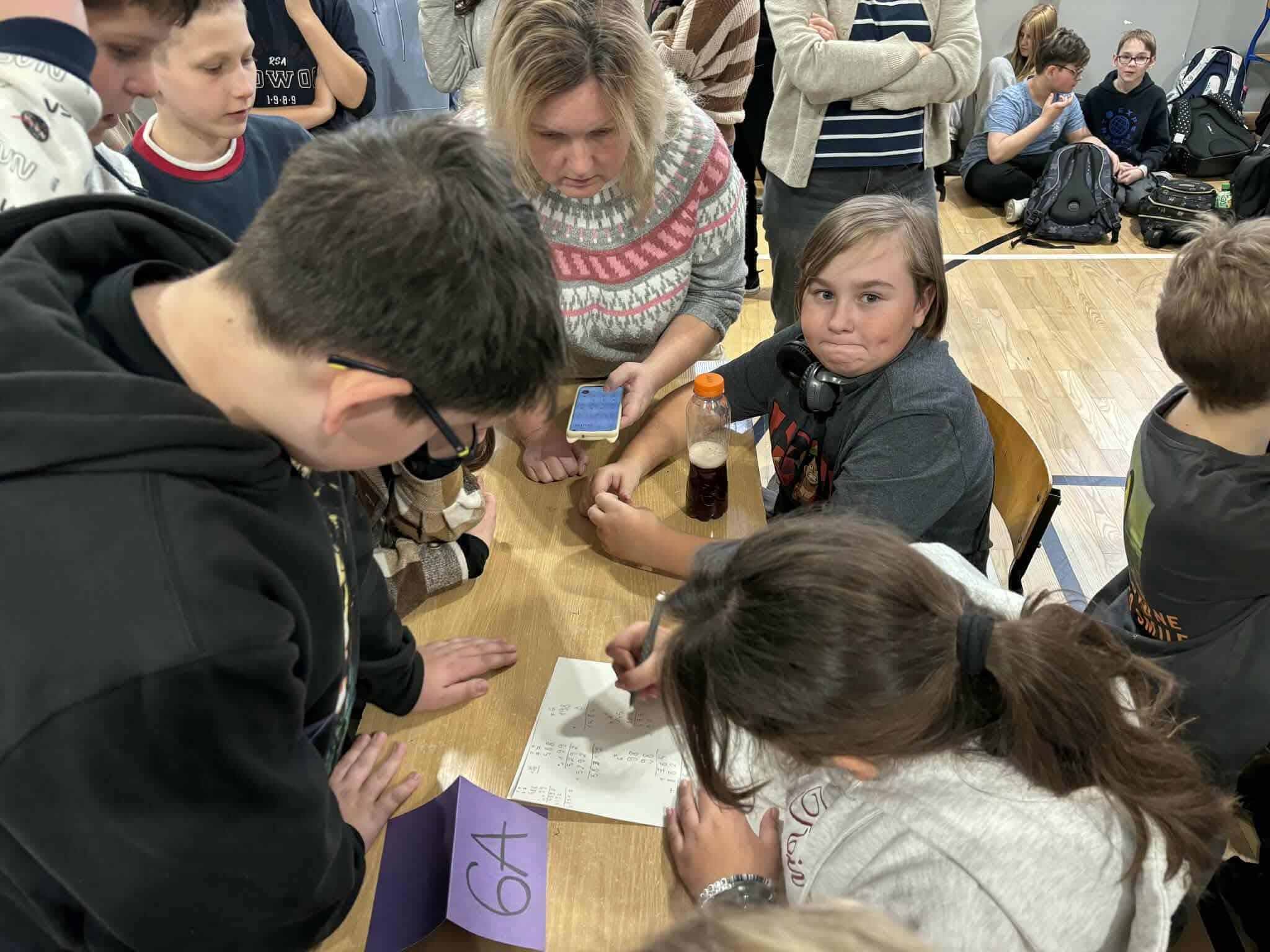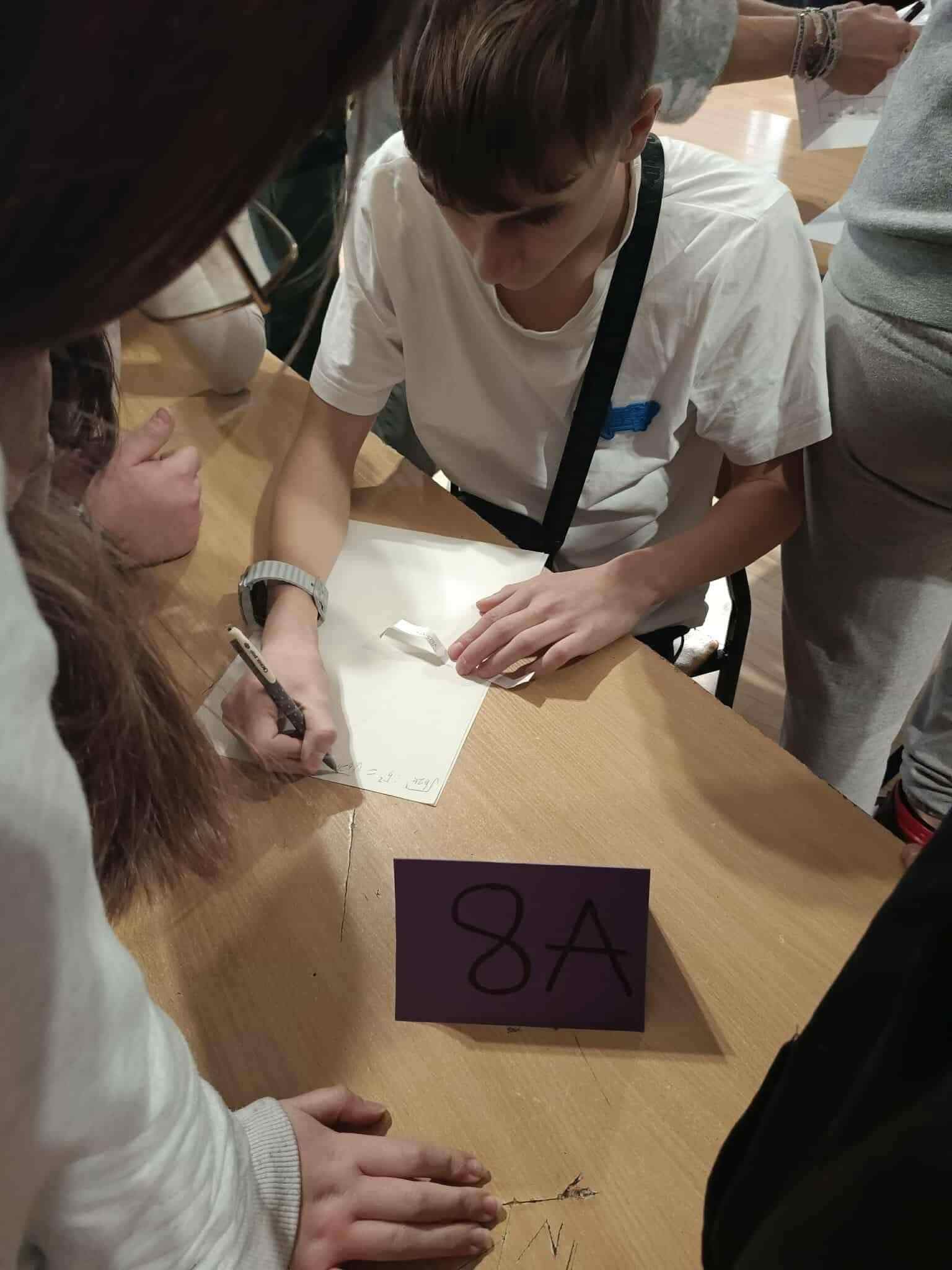 Na zakończenie każda grupa przygotowała oryginalny okrzyk związany z mnożeniem. Były rymy, rytmiczne hasła i ogromna energia, która porwała całą salę. To właśnie te okrzyki stały się symbolem radosnego finału matematycznych zmagań. Dzień Tabliczki Mnożenia pokazał, że nauka może być świetną zabawą, a matematyka wcale nie musi być trudna.
