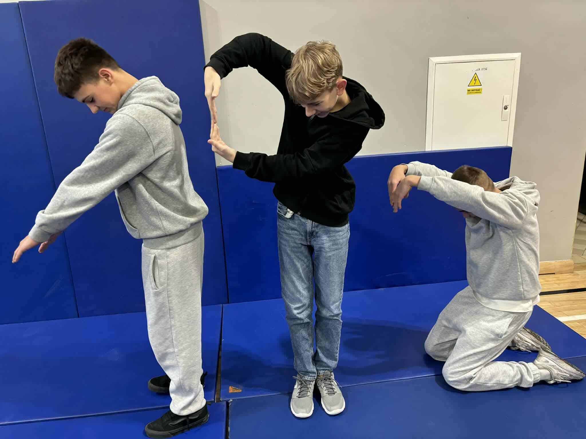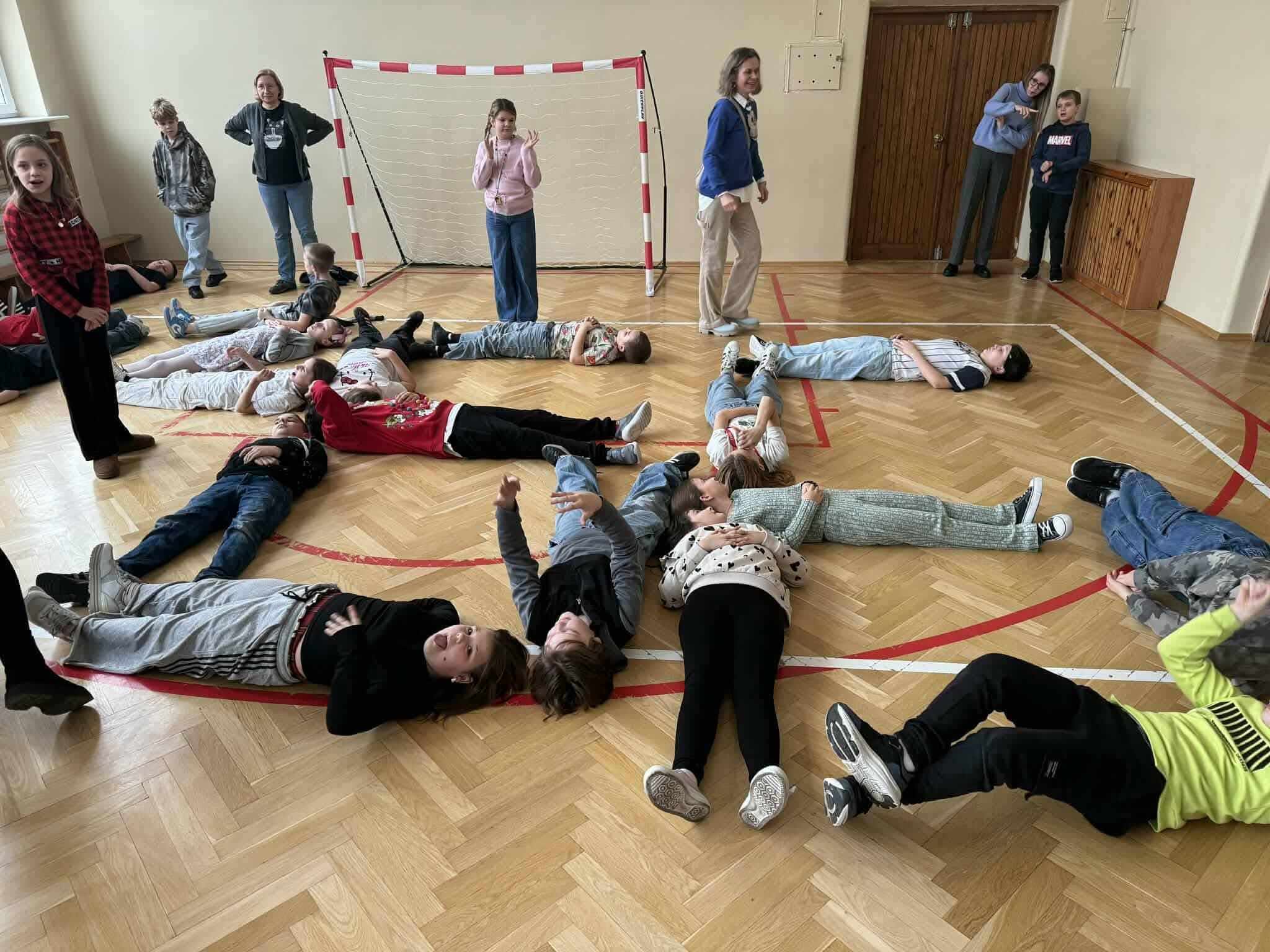 Kolejnym wyzwaniem było zadanie, które wymagało nie tylko wiedzy matematycznej, ale także współpracy i kreatywności. Uczniowie mieli ułożyć z własnych ciał liczbę będącą wynikiem wylosowanego działania mnożenia. Efekty były niesamowite. Dzieci wykazały się pomysłowością, a przy okazji świetnie się bawiły tworząc liczby w zaskakujących układach.