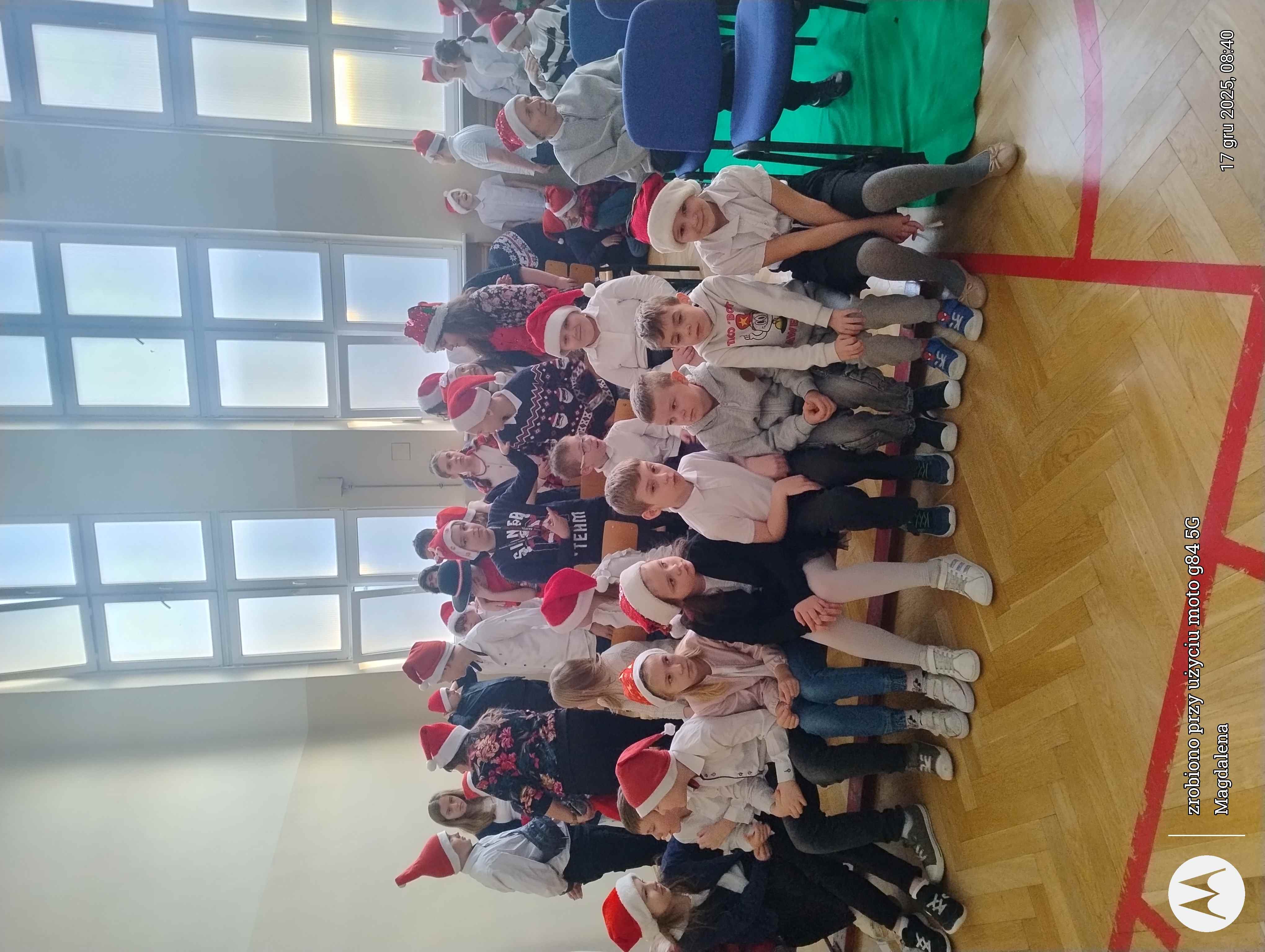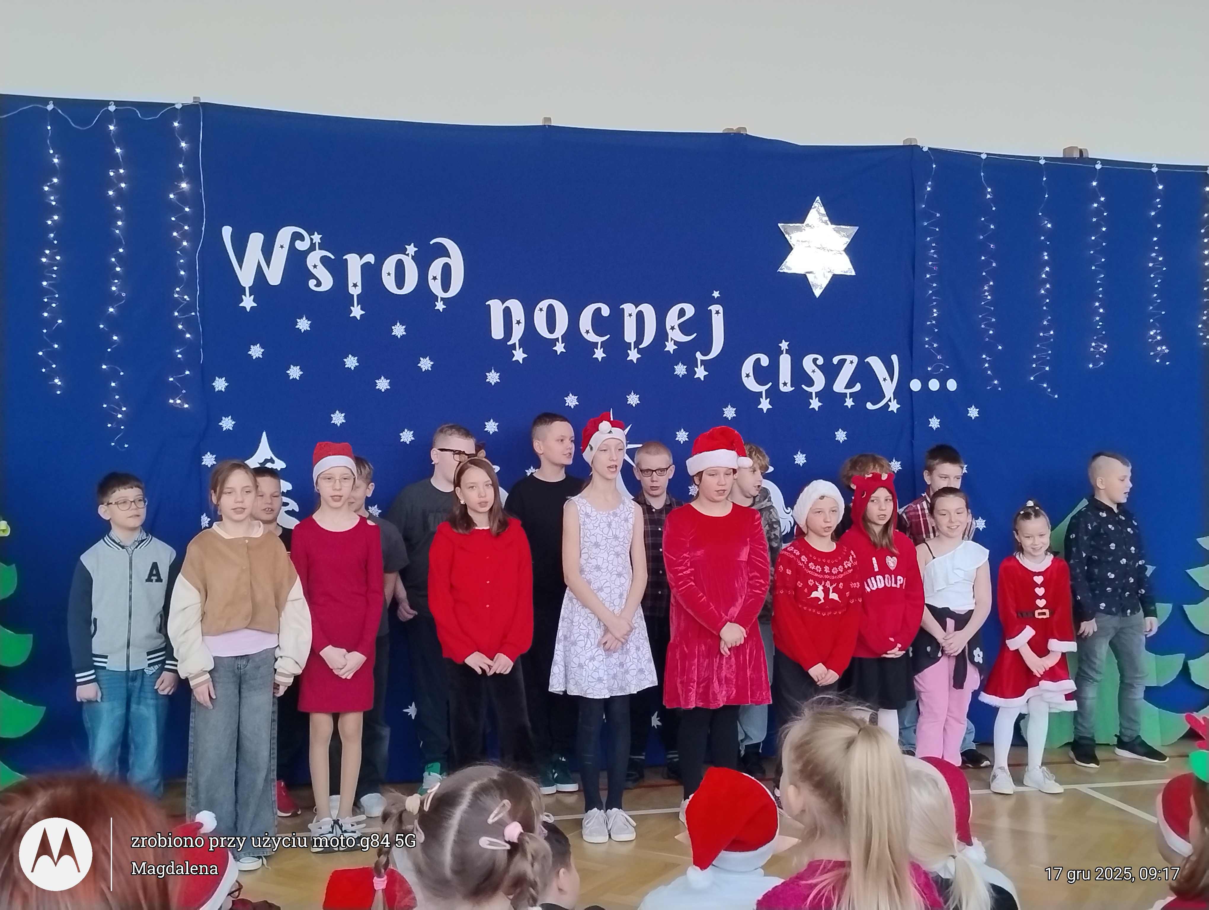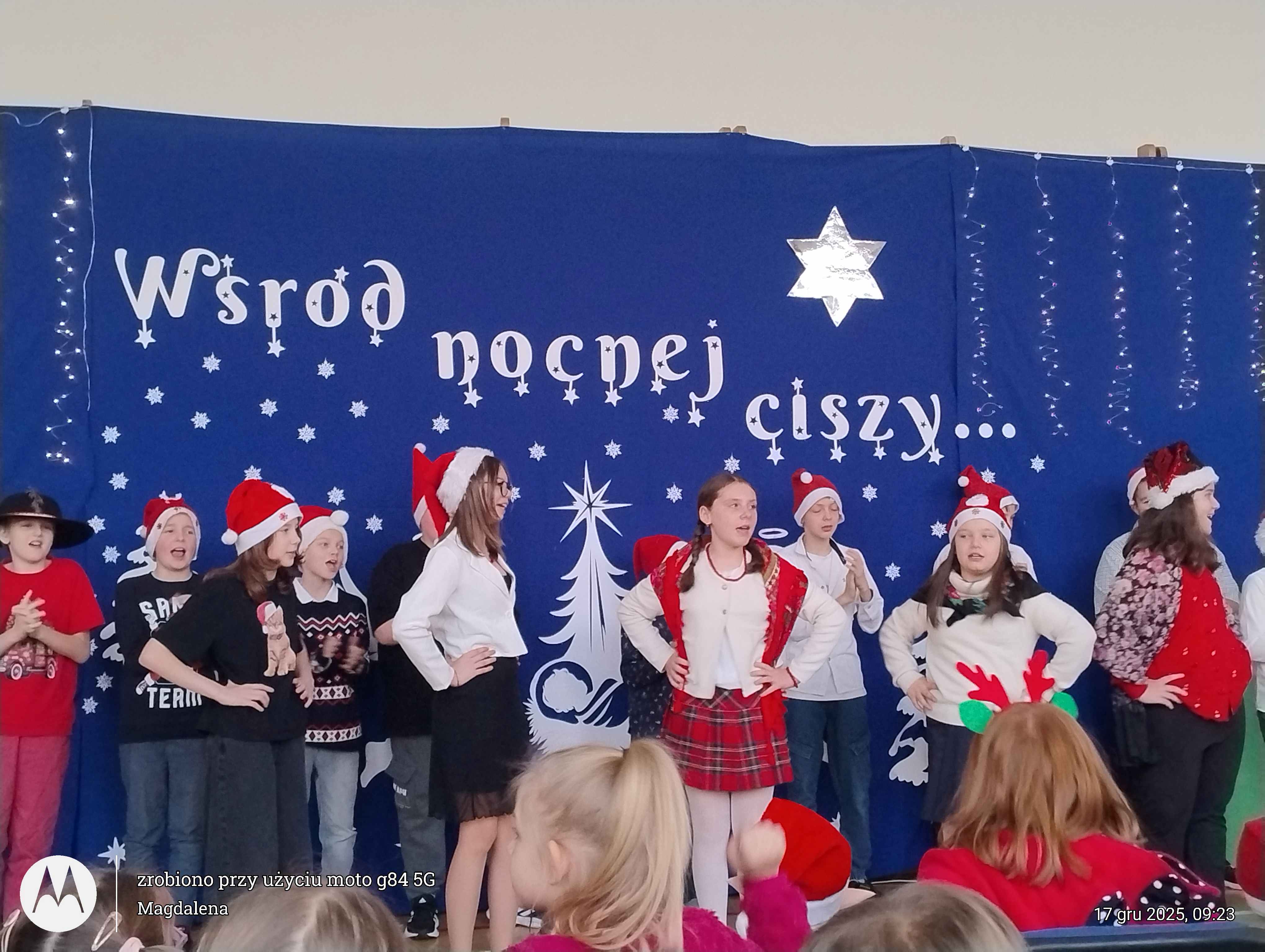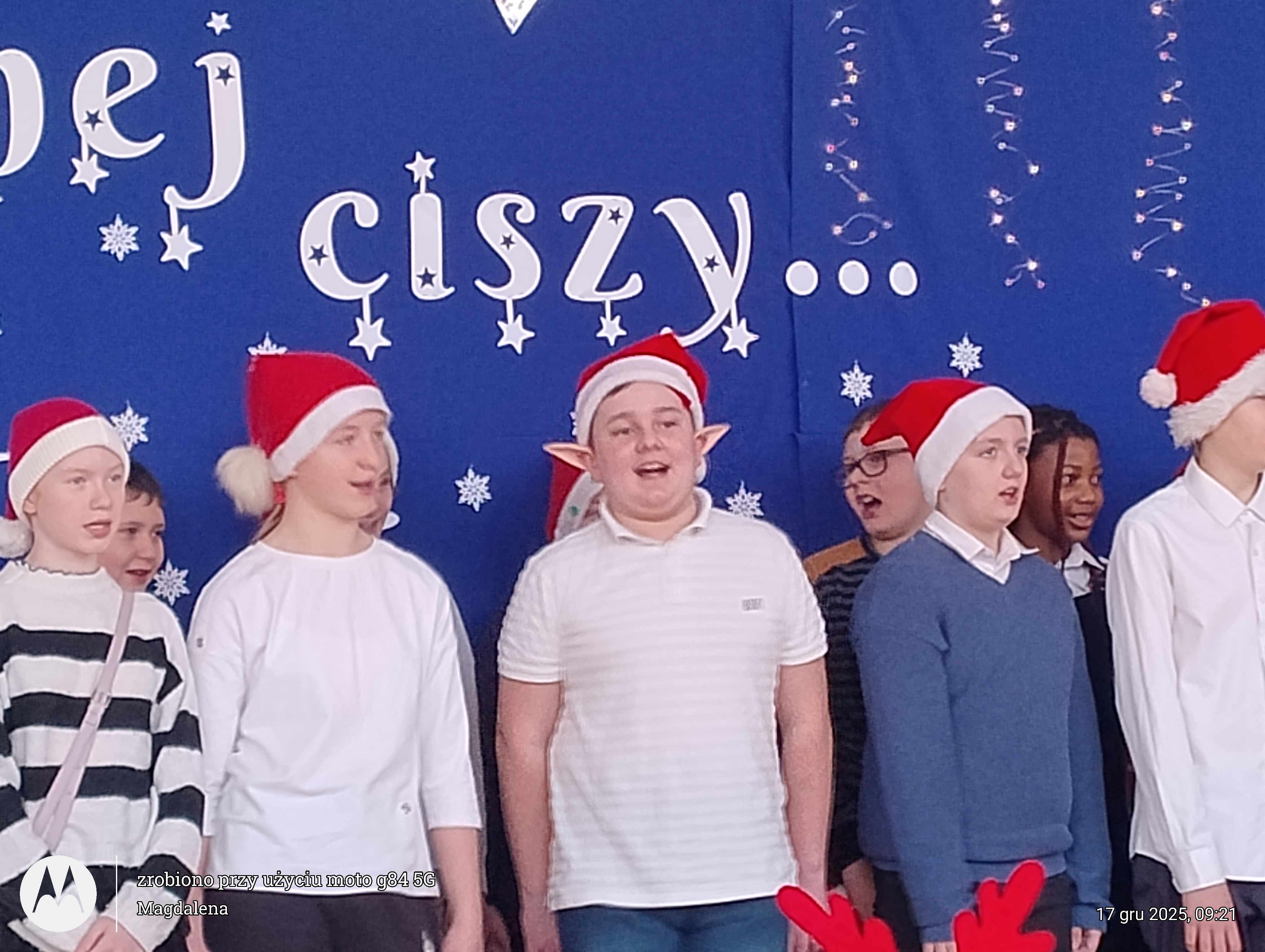 Koncert Kolęd rozpoczęło zapalenie przez p. Dyrektor symbolicznego światła, by prowadziło nas ku nadziei oraz połączenie ozdobnego łańcucha, by tak jak on wszyscy stanowili jedność. Występy klas wzbogacone o piękne stroje i choreografię rozsiało znane od najmłodszych lat, miłe dzięki. Wspólne kolędowanie pozwoliło nam na chwilę zatrzymać się i powoli wprowadzić w atmosferę nadchodzących Świąt Bożego Narodzenia.