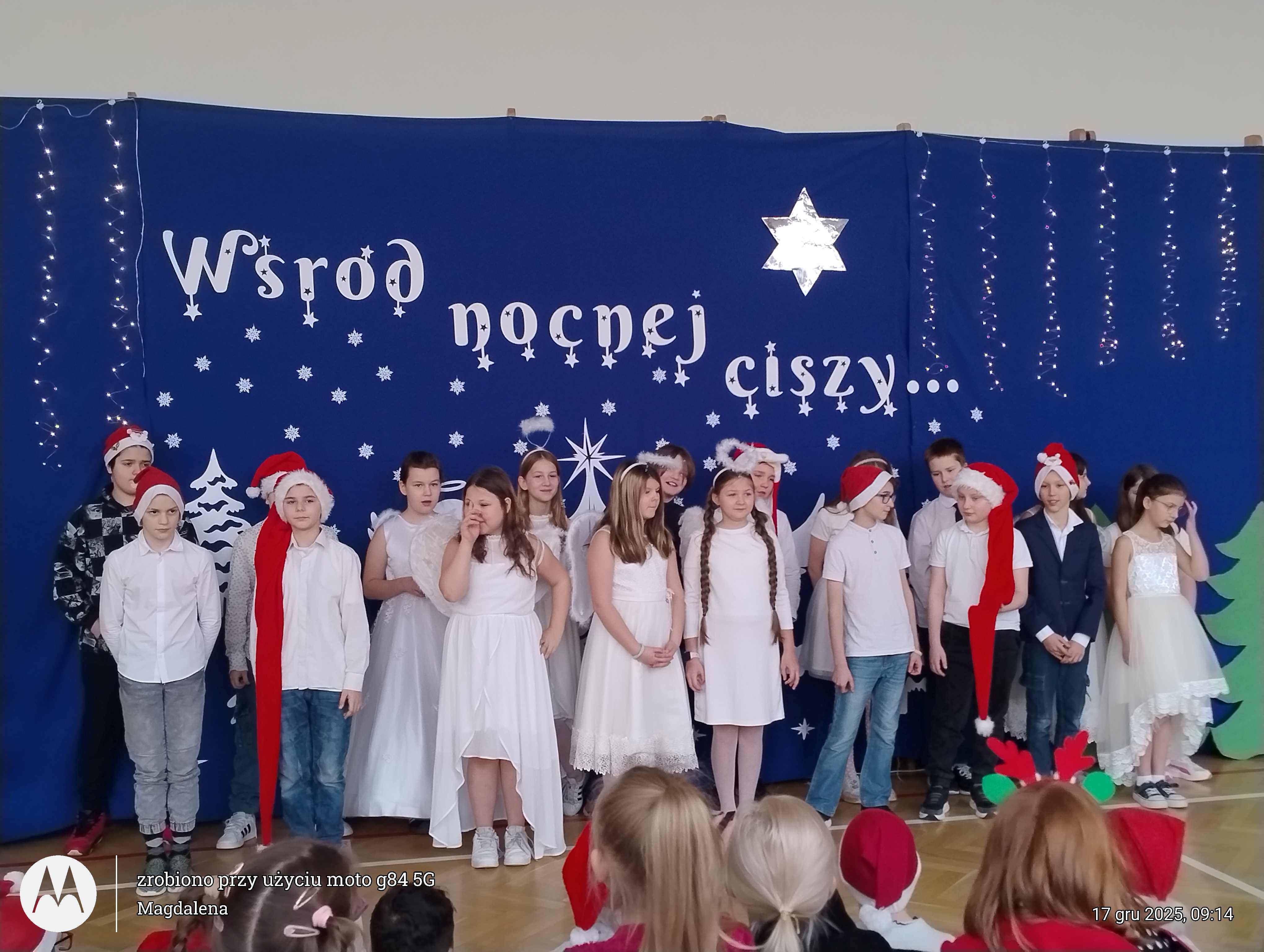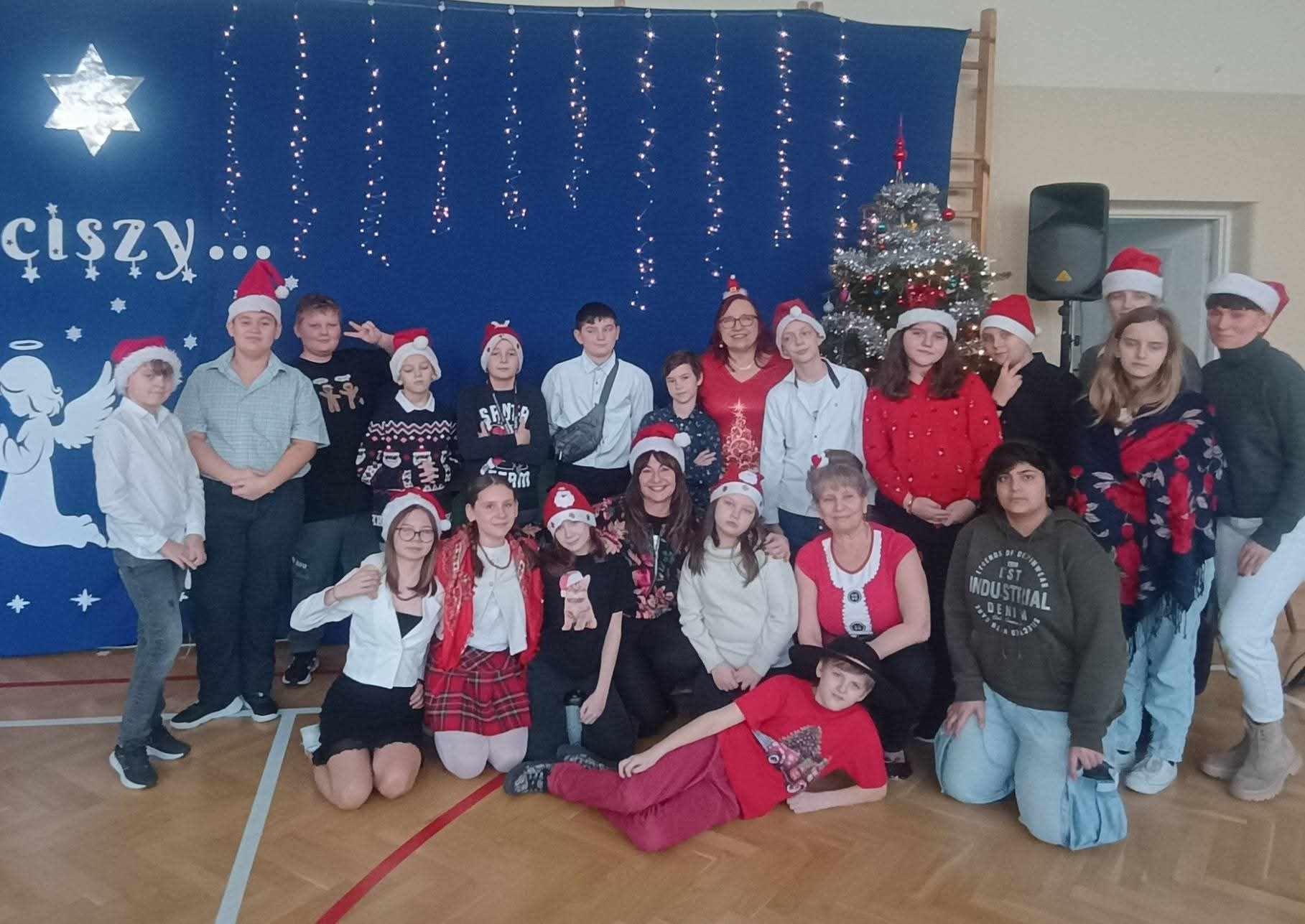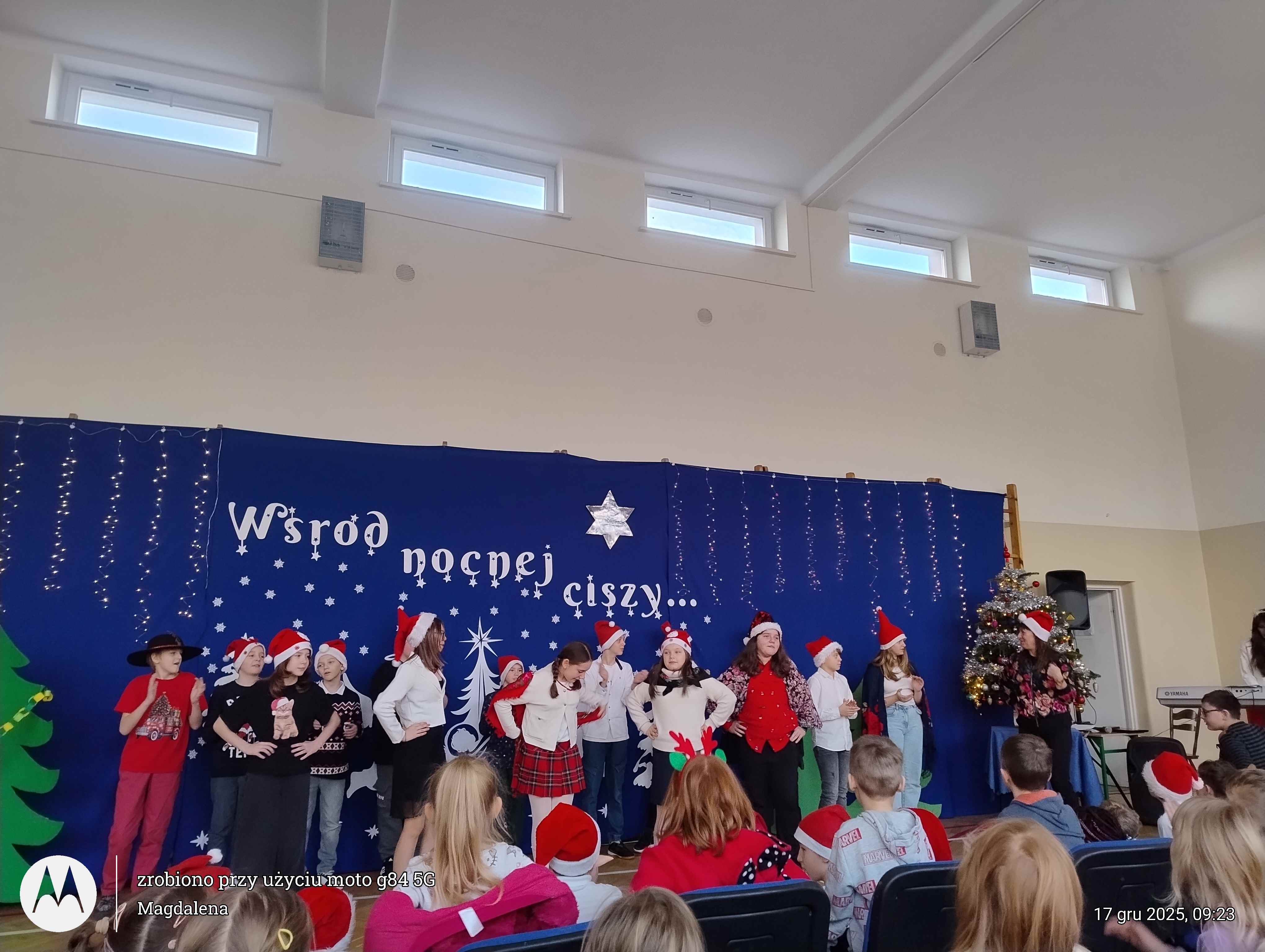 Koncert Kolęd rozpoczęło zapalenie przez p. Dyrektor symbolicznego światła, by prowadziło nas ku nadziei oraz połączenie ozdobnego łańcucha, by tak jak on wszyscy stanowili jedność. Występy klas wzbogacone o piękne stroje i choreografię rozsiało znane od najmłodszych lat, miłe dzięki. Wspólne kolędowanie pozwoliło nam na chwilę zatrzymać się i powoli wprowadzić w atmosferę nadchodzących Świąt Bożego Narodzenia.
