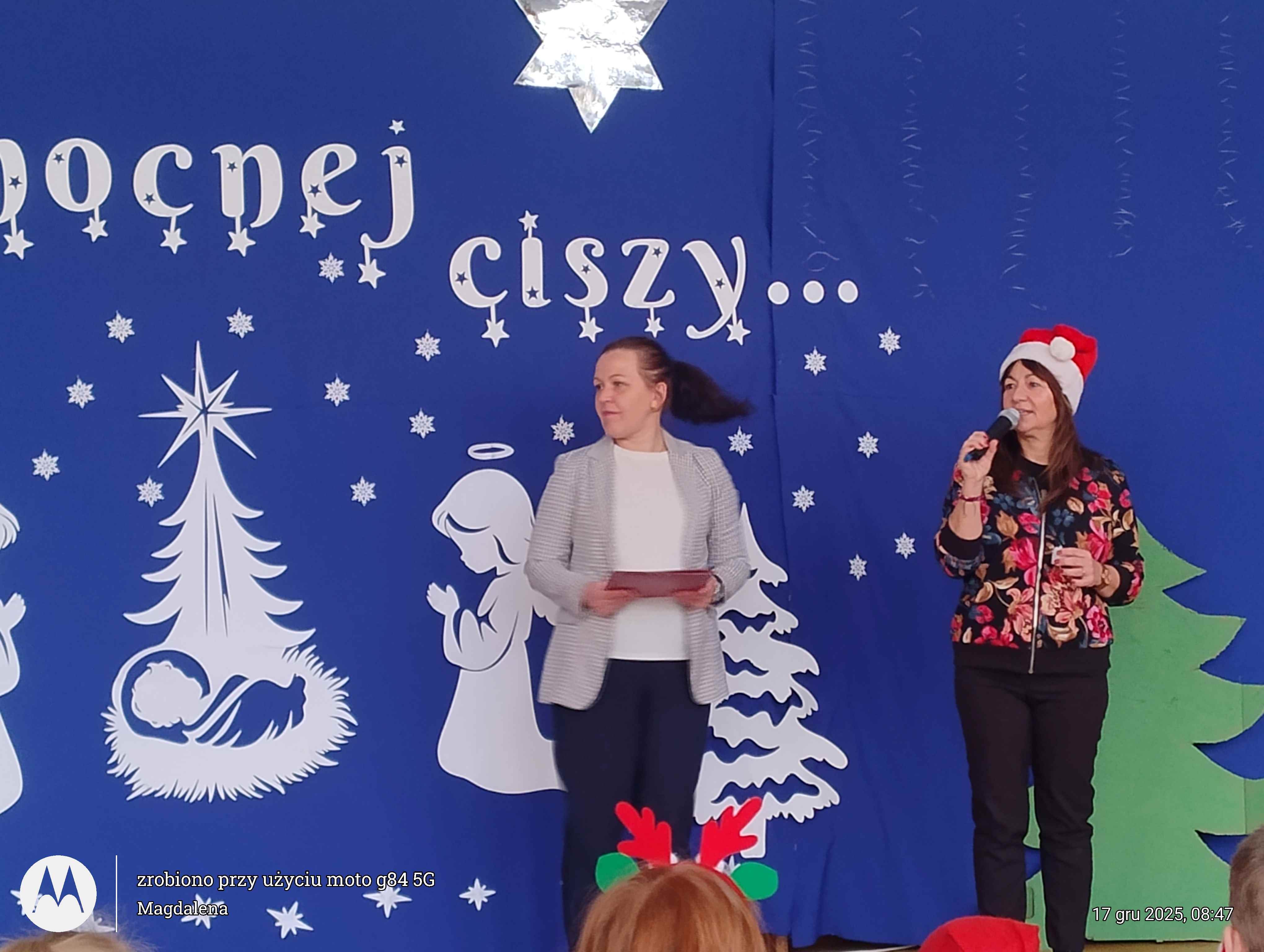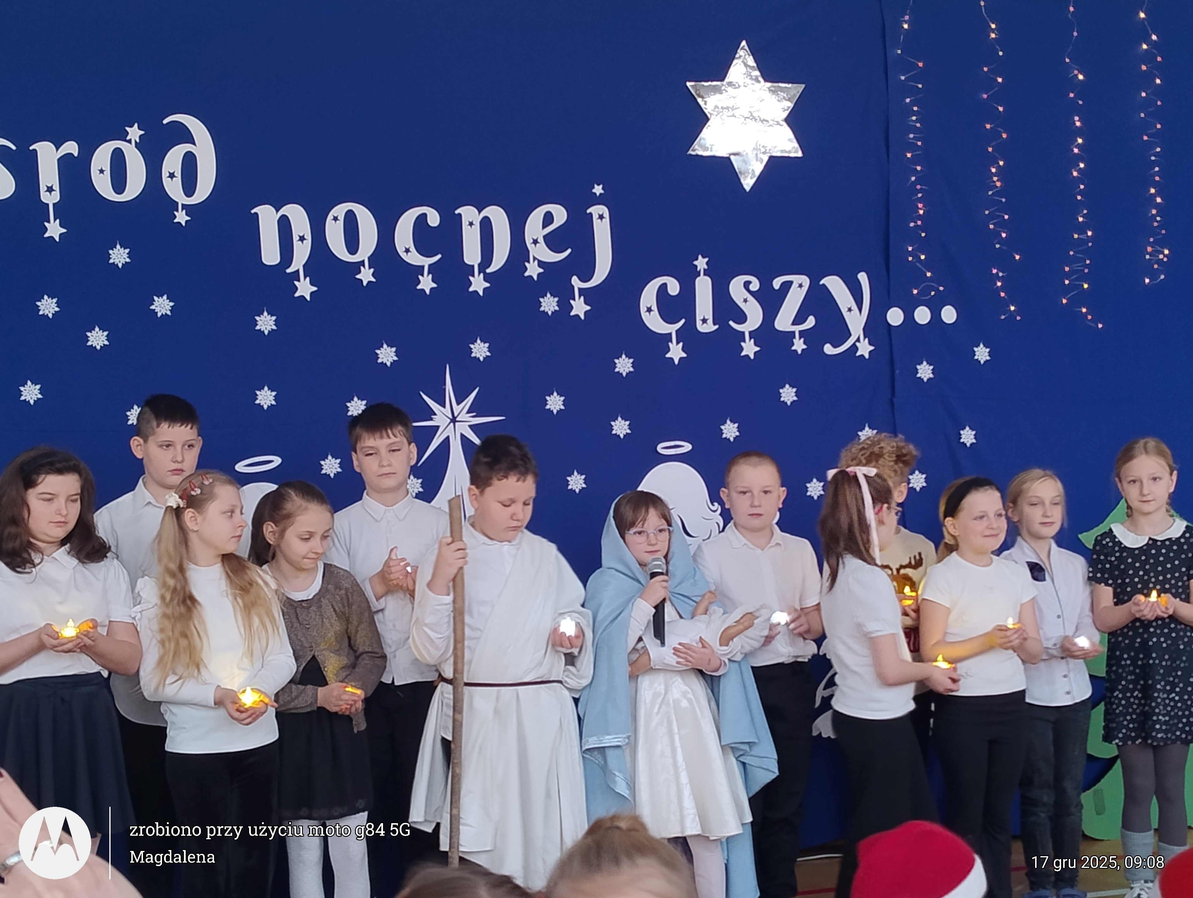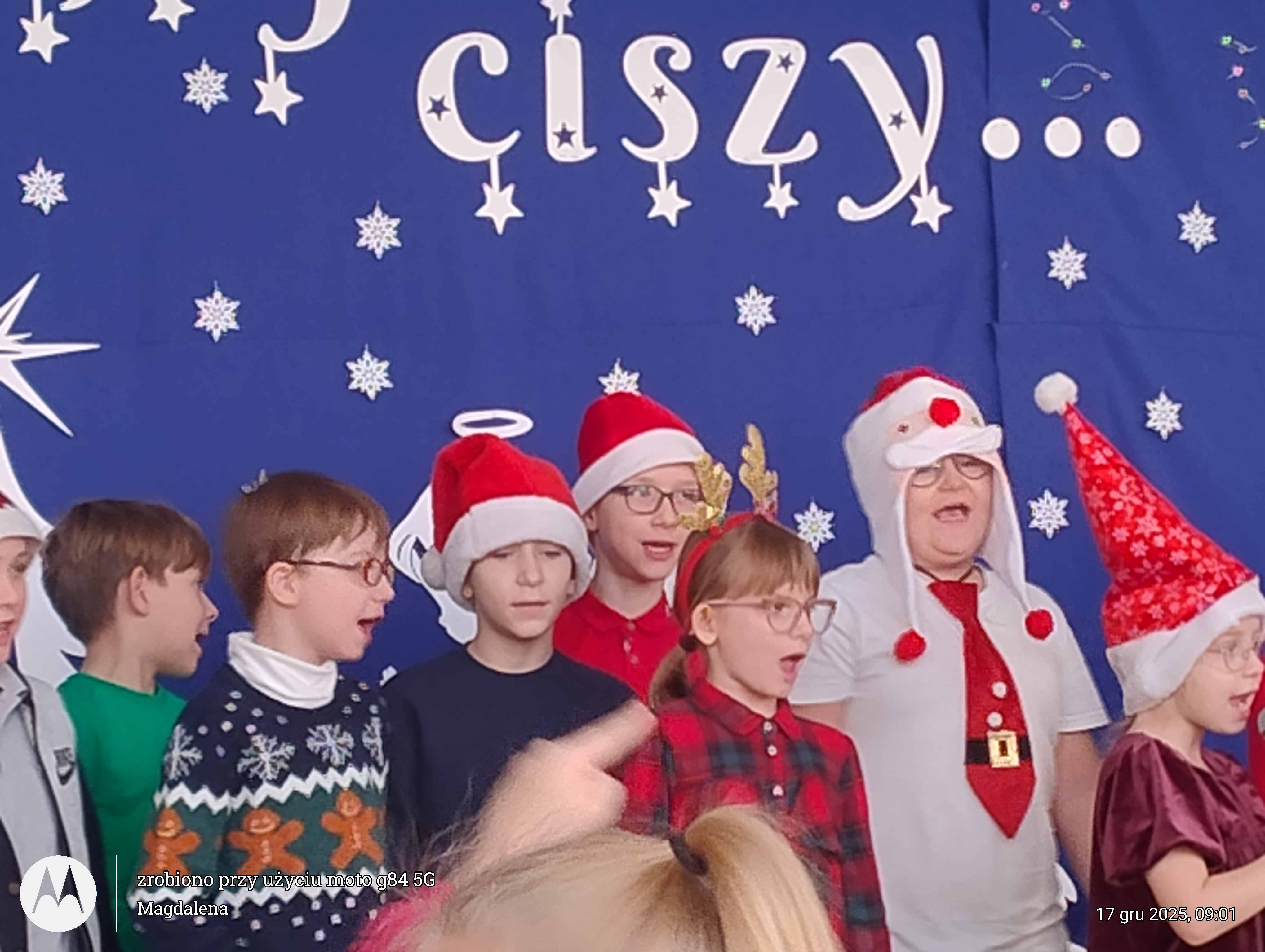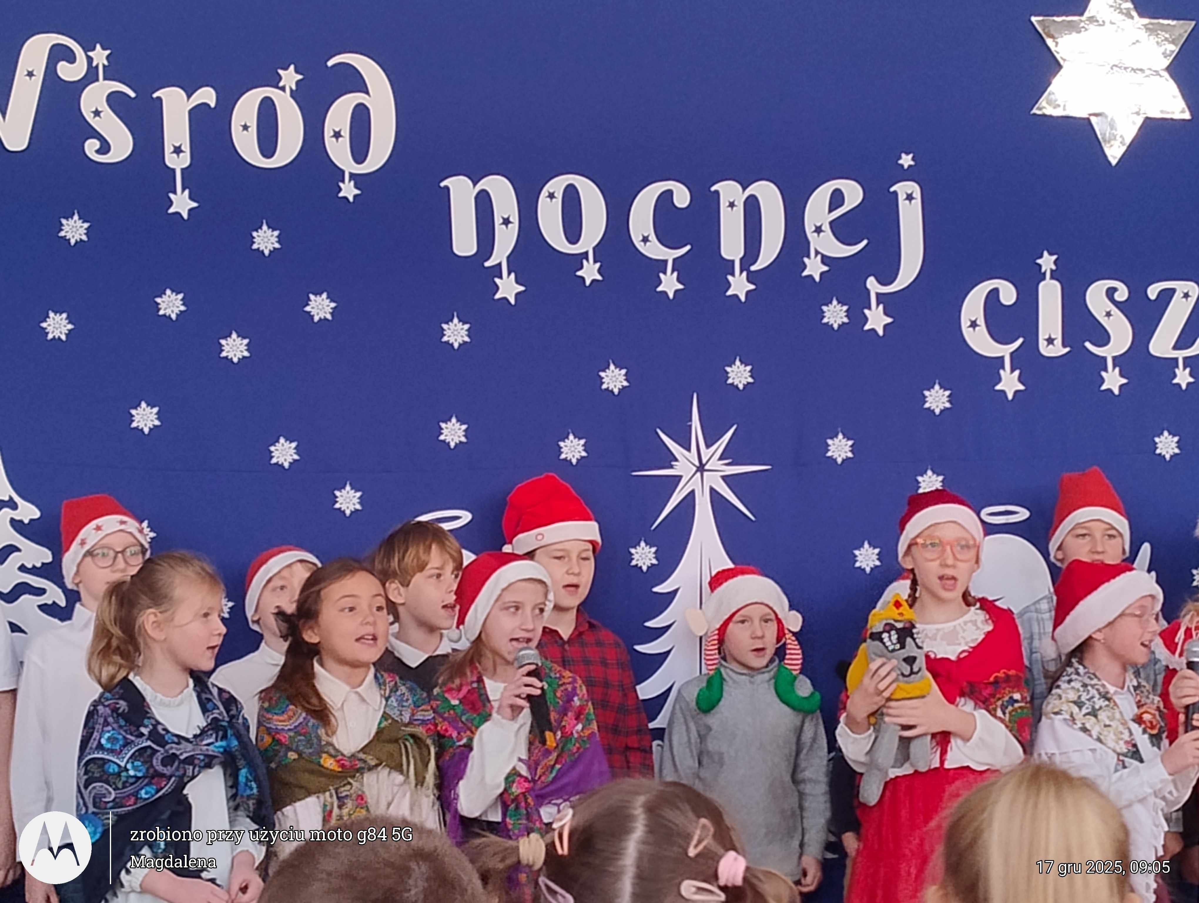 Koncert Kolęd rozpoczęło zapalenie przez p. Dyrektor symbolicznego światła, by prowadziło nas ku nadziei oraz połączenie ozdobnego łańcucha, by tak jak on wszyscy stanowili jedność. Występy klas wzbogacone o piękne stroje i choreografię rozsiało znane od najmłodszych lat, miłe dzięki. Wspólne kolędowanie pozwoliło nam na chwilę zatrzymać się i powoli wprowadzić w atmosferę nadchodzących Świąt Bożego Narodzenia.