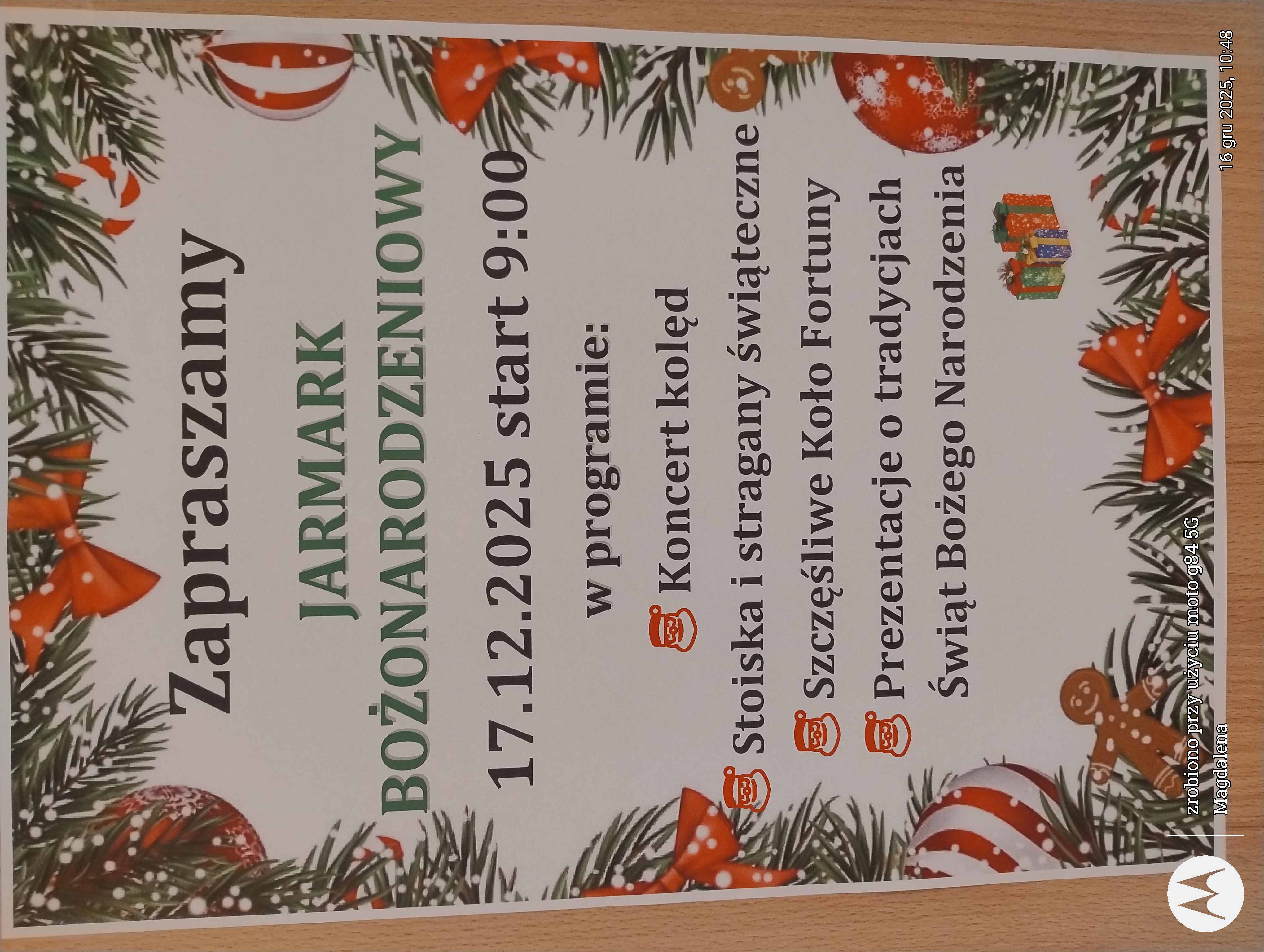 W dniu dzisiejszym, 17 grudnia, w naszej szkole odbył się jarmark bożonarodzeniowy połączony z koncertem kolęd i pastorałek. Było ciepło, radośnie i bardzo świątecznie.