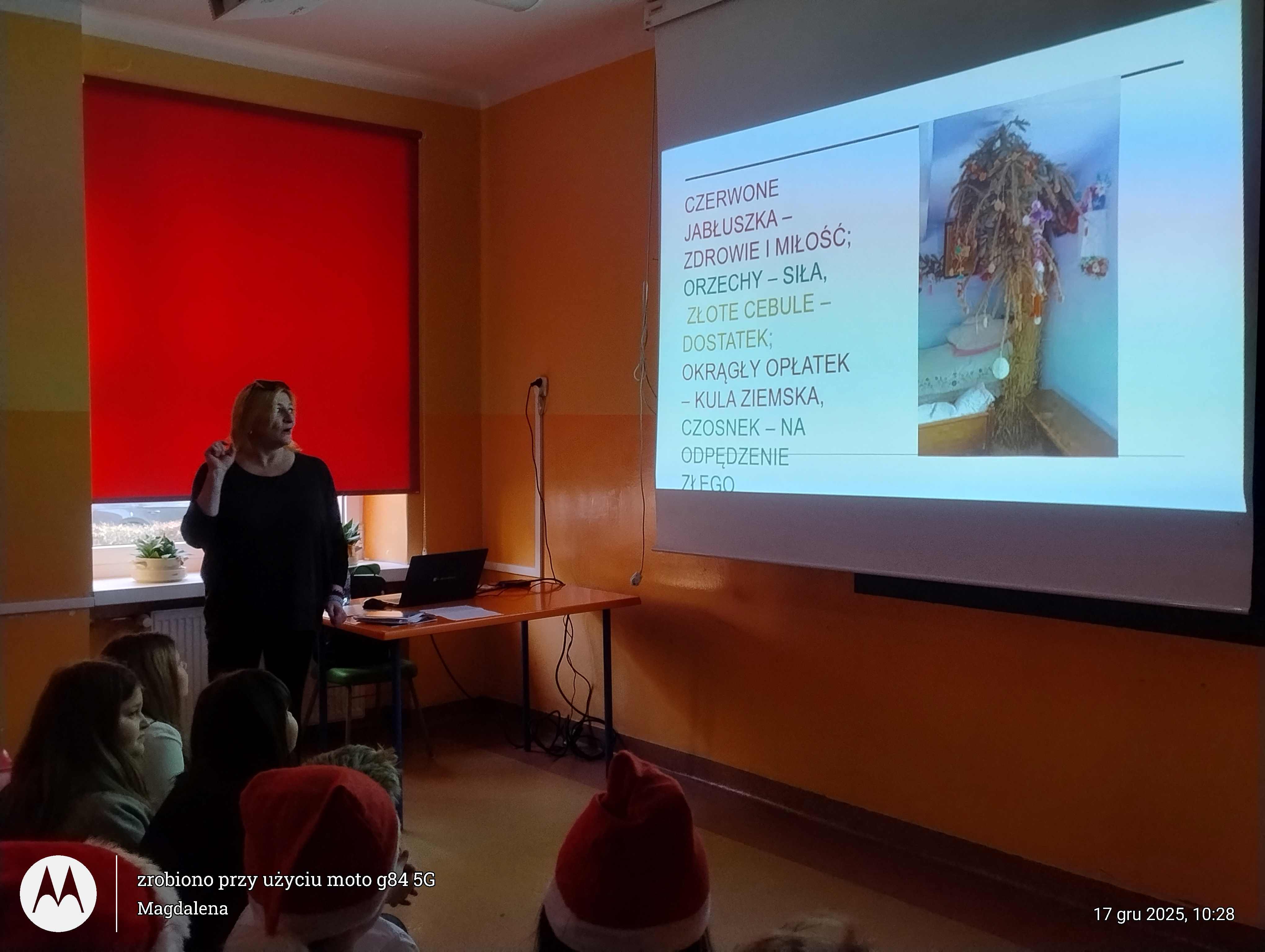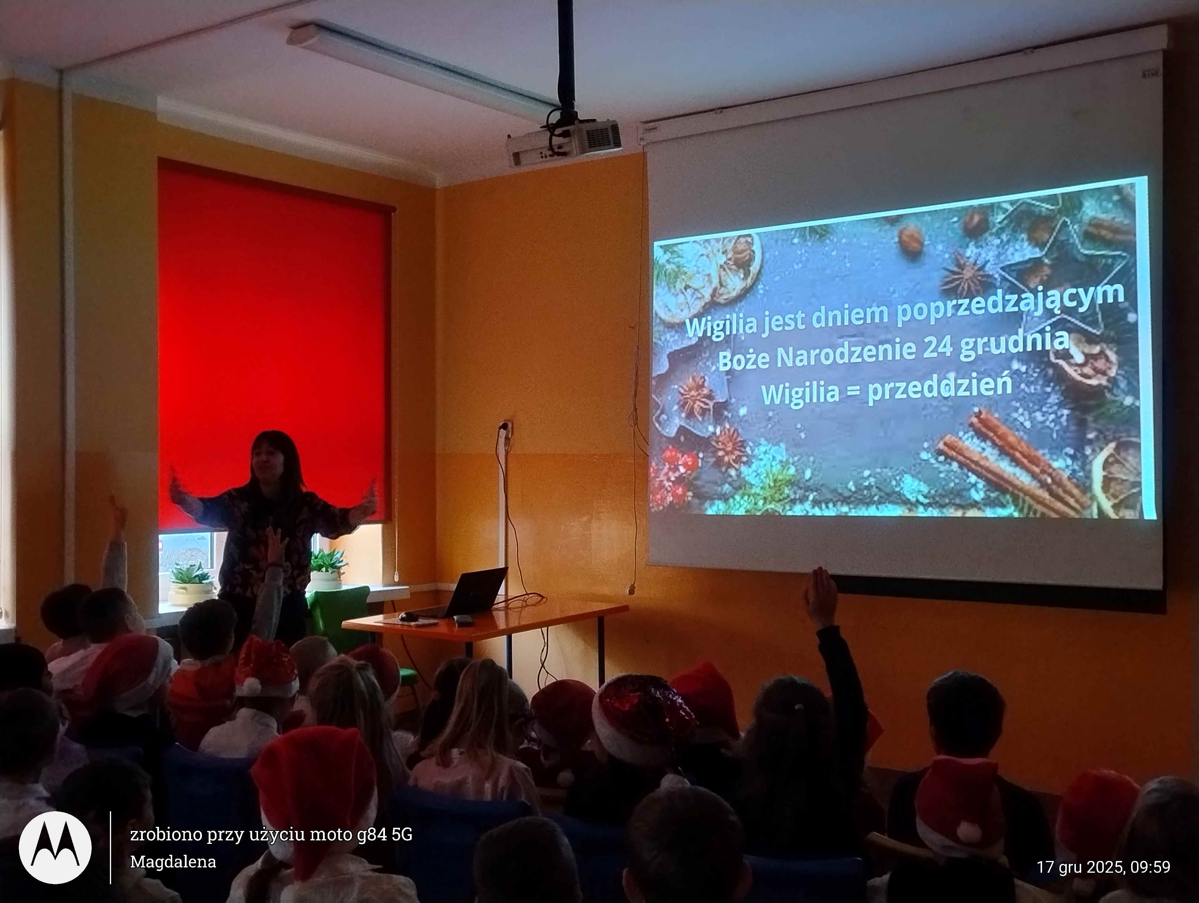 Dla dzieci przygotowane były także prezentacje, dzięki którym mogły przypomnieć sobie tradycje i znaczenie świąt, łącząc radość wspólnego świętowania z nauką i refleksją.