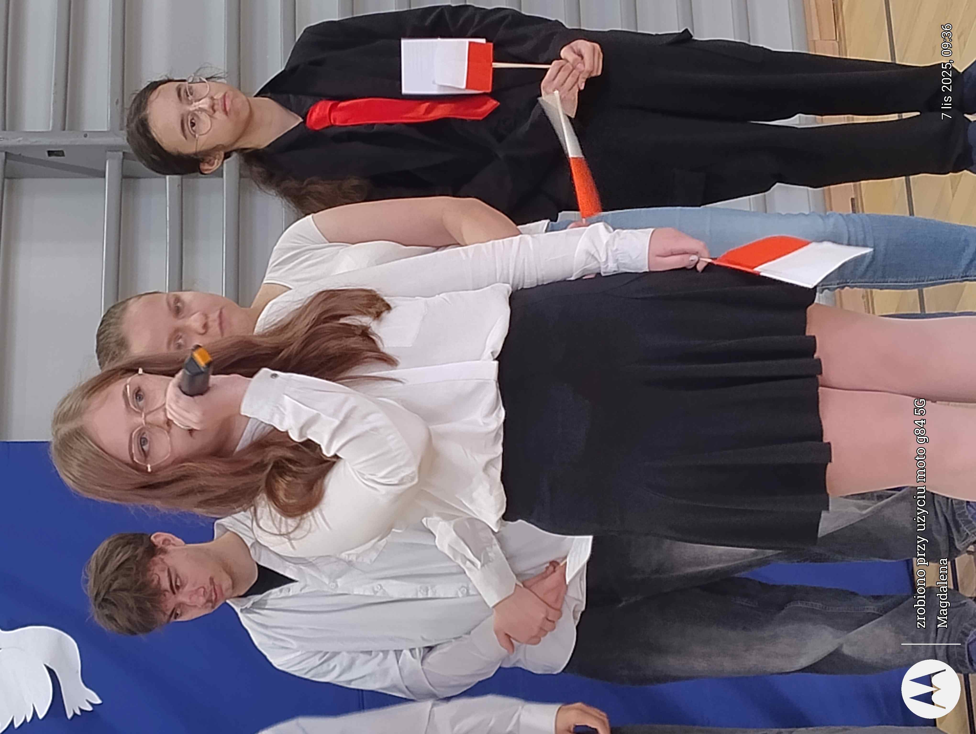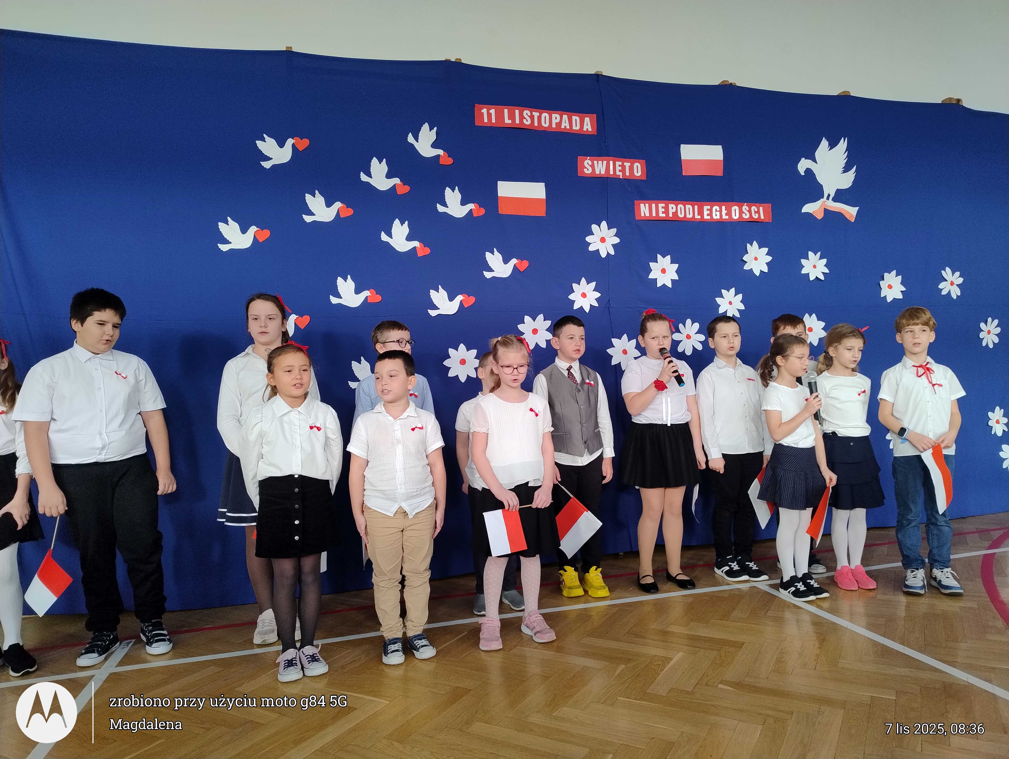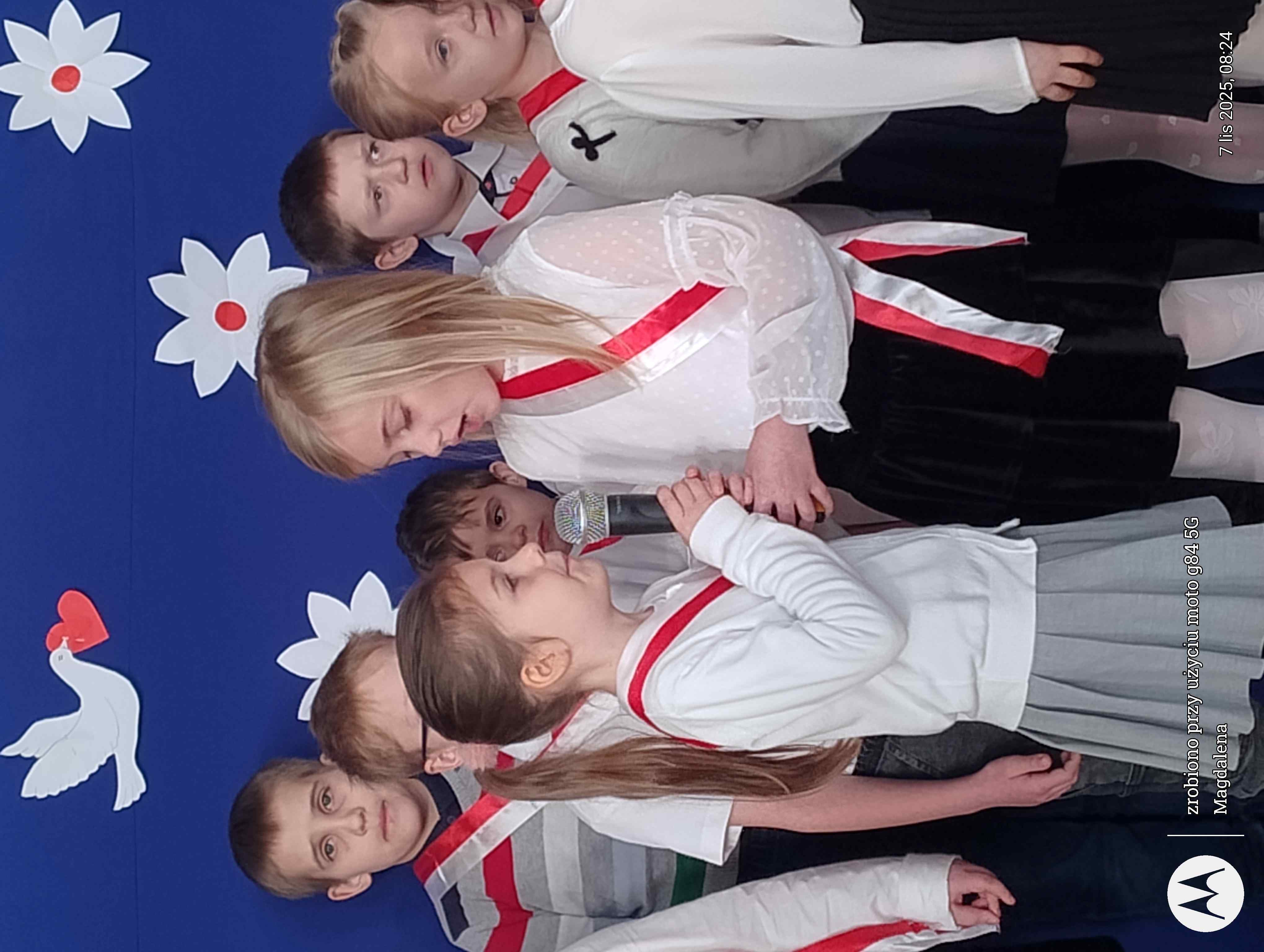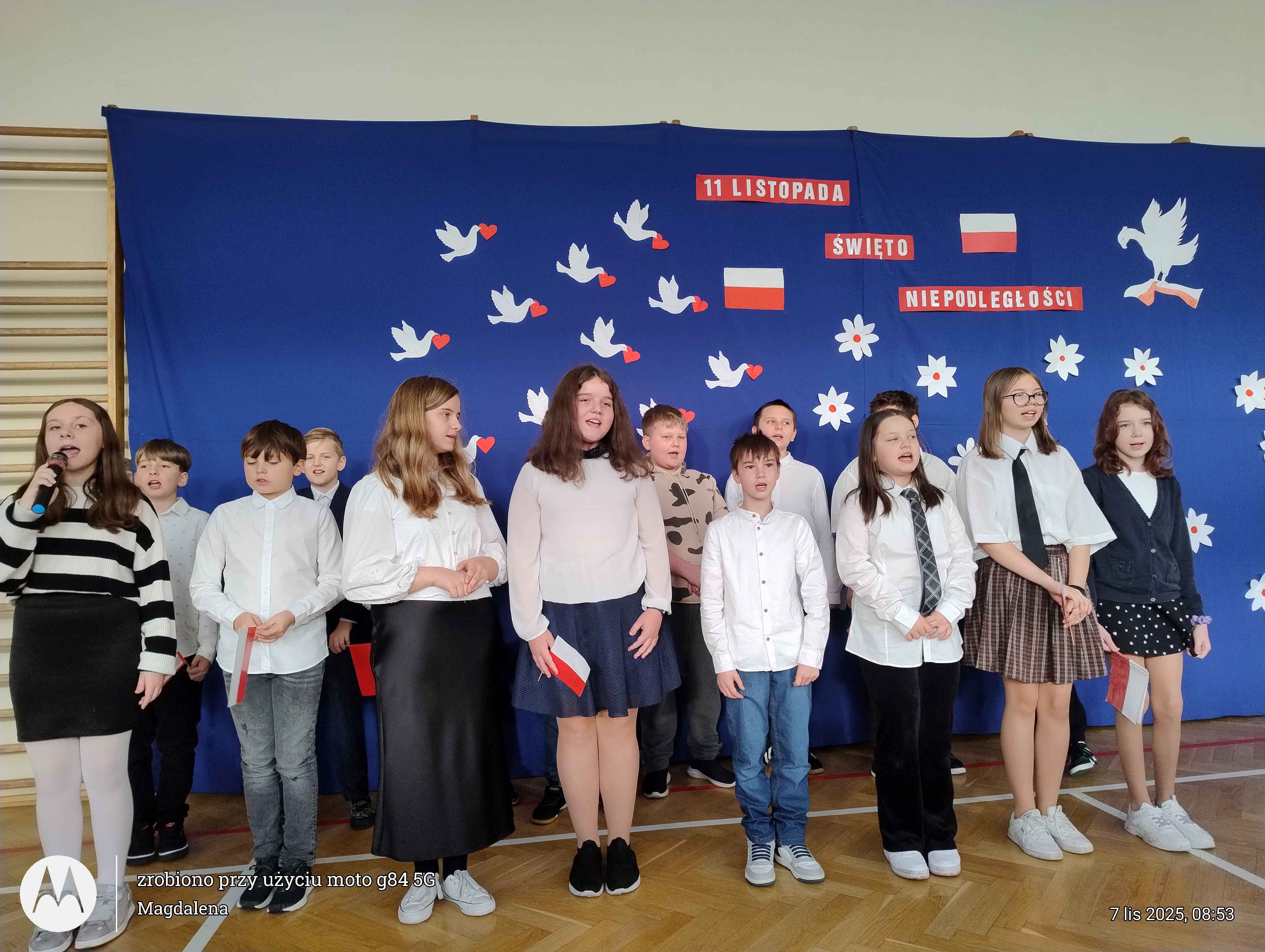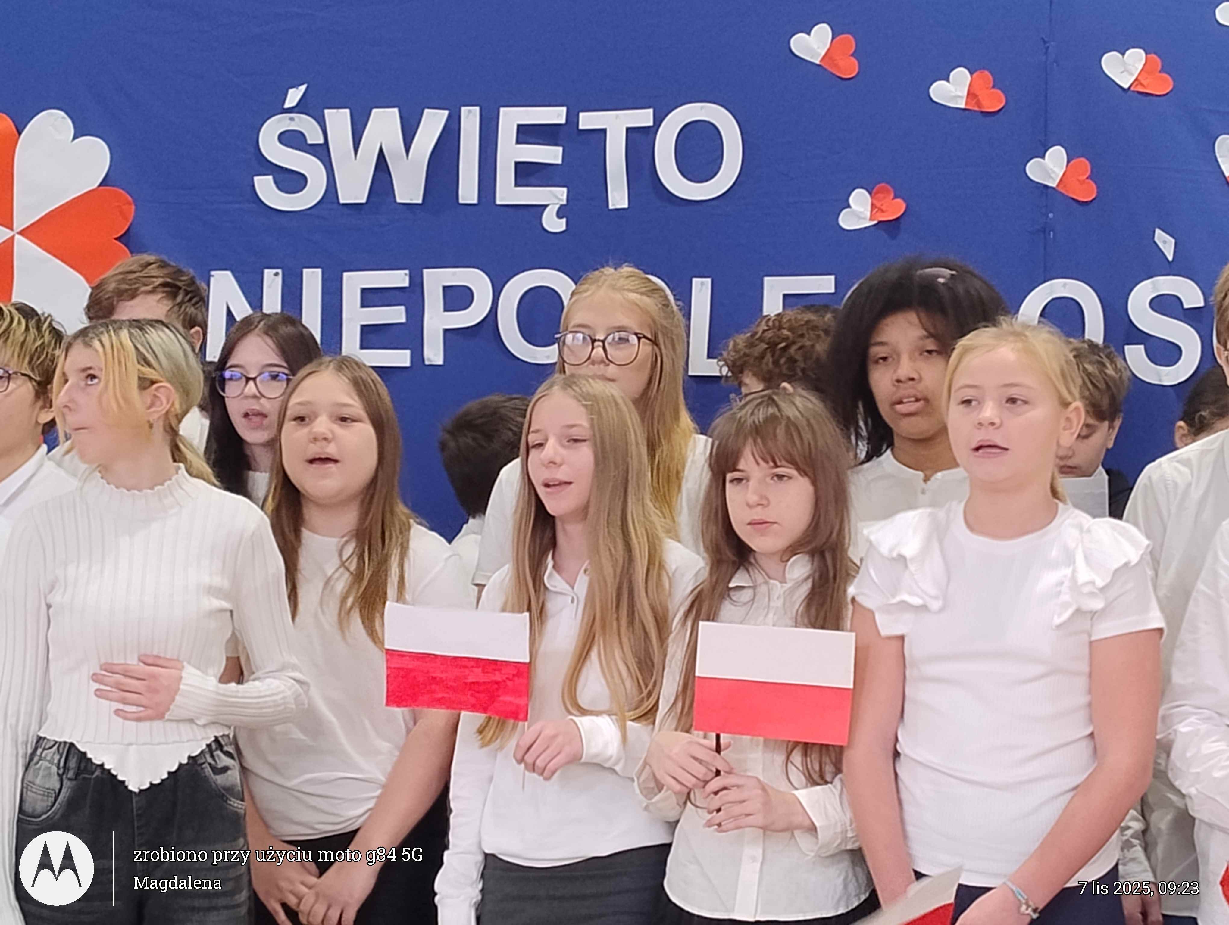 Wspólne odśpiewanie Mazurka Dąbrowskiego połączyło nas wszystkich uczniów, nauczycieli i gości – w jednym głosie dumy z bycia Polakami.
