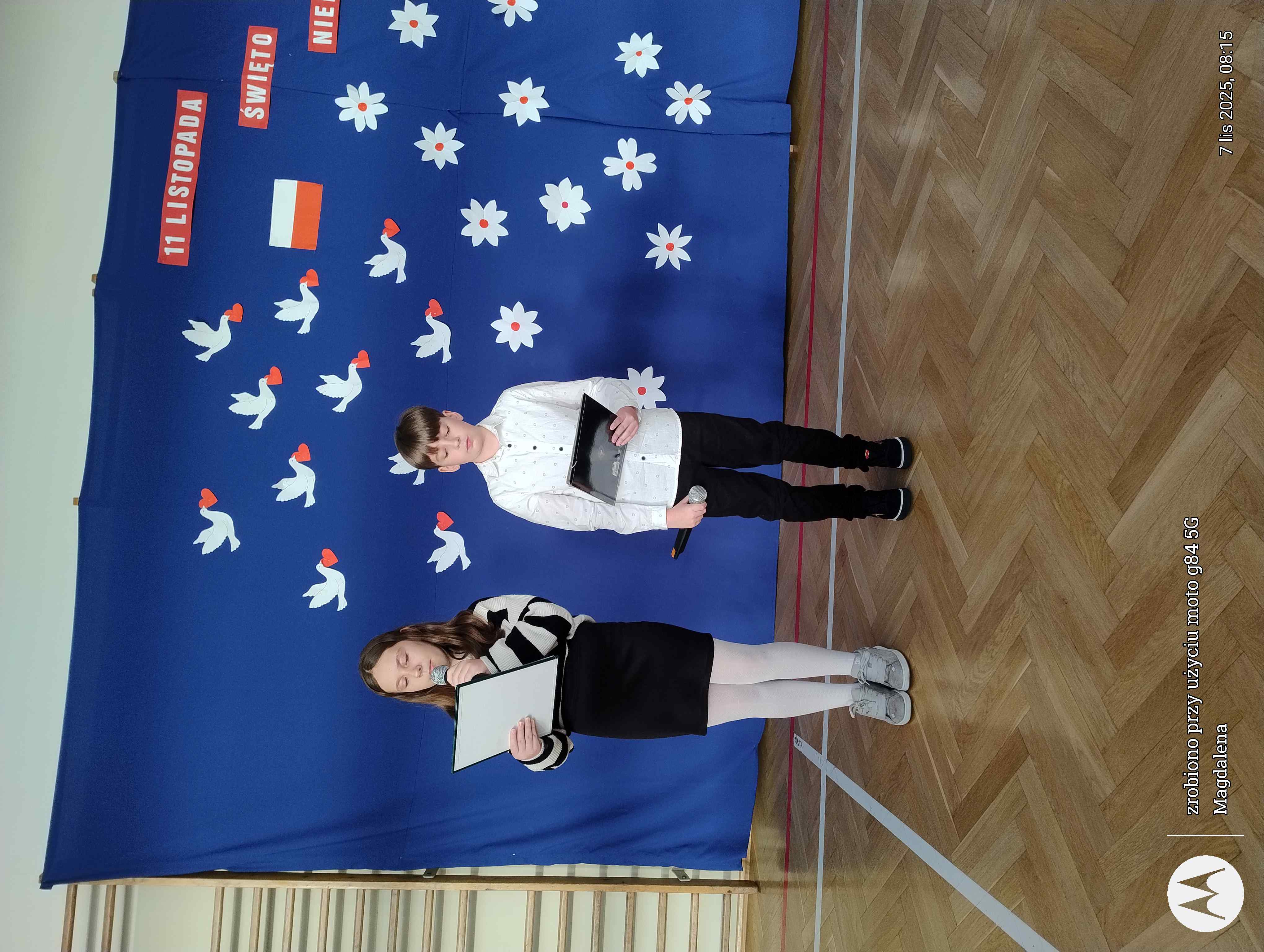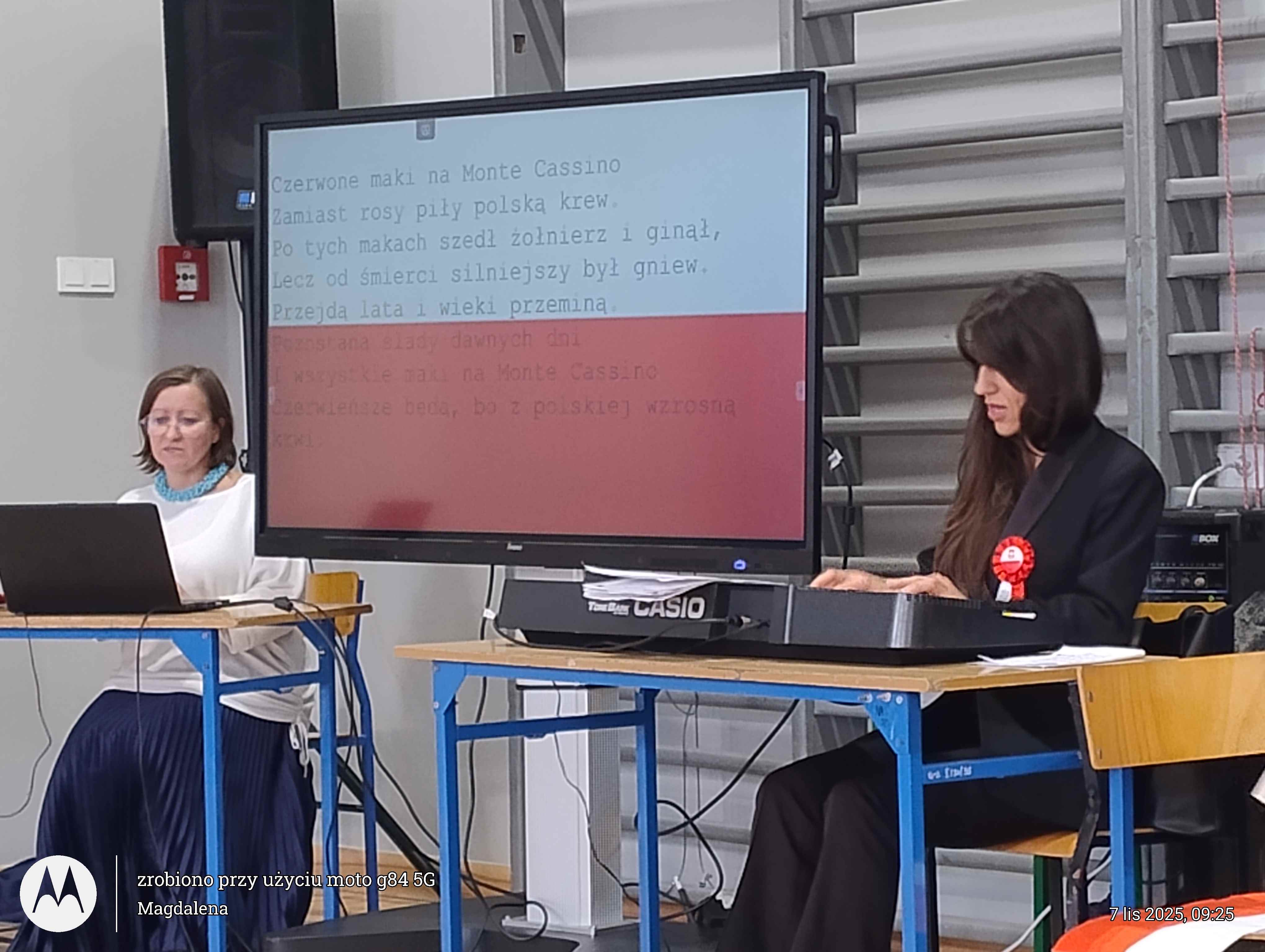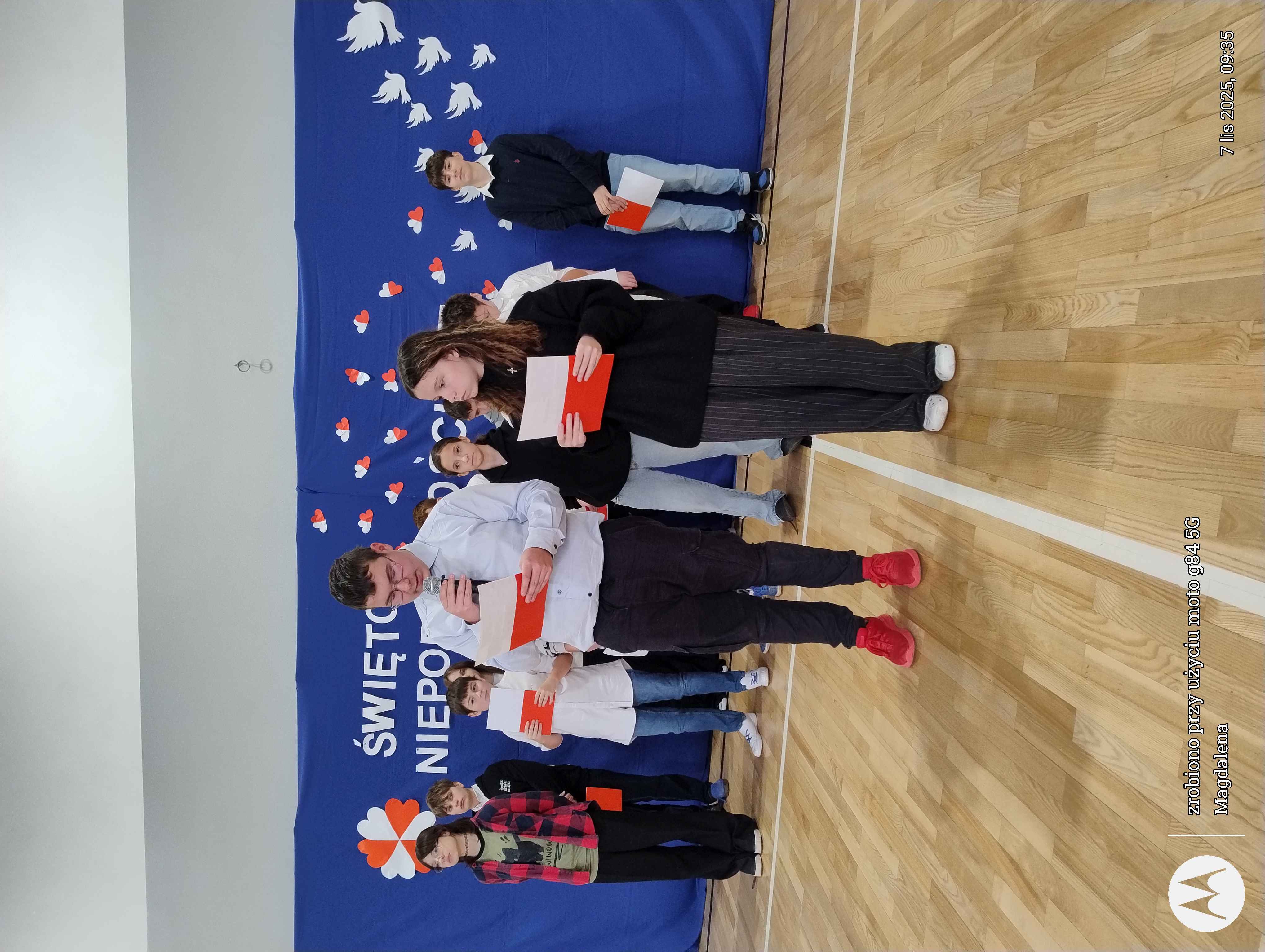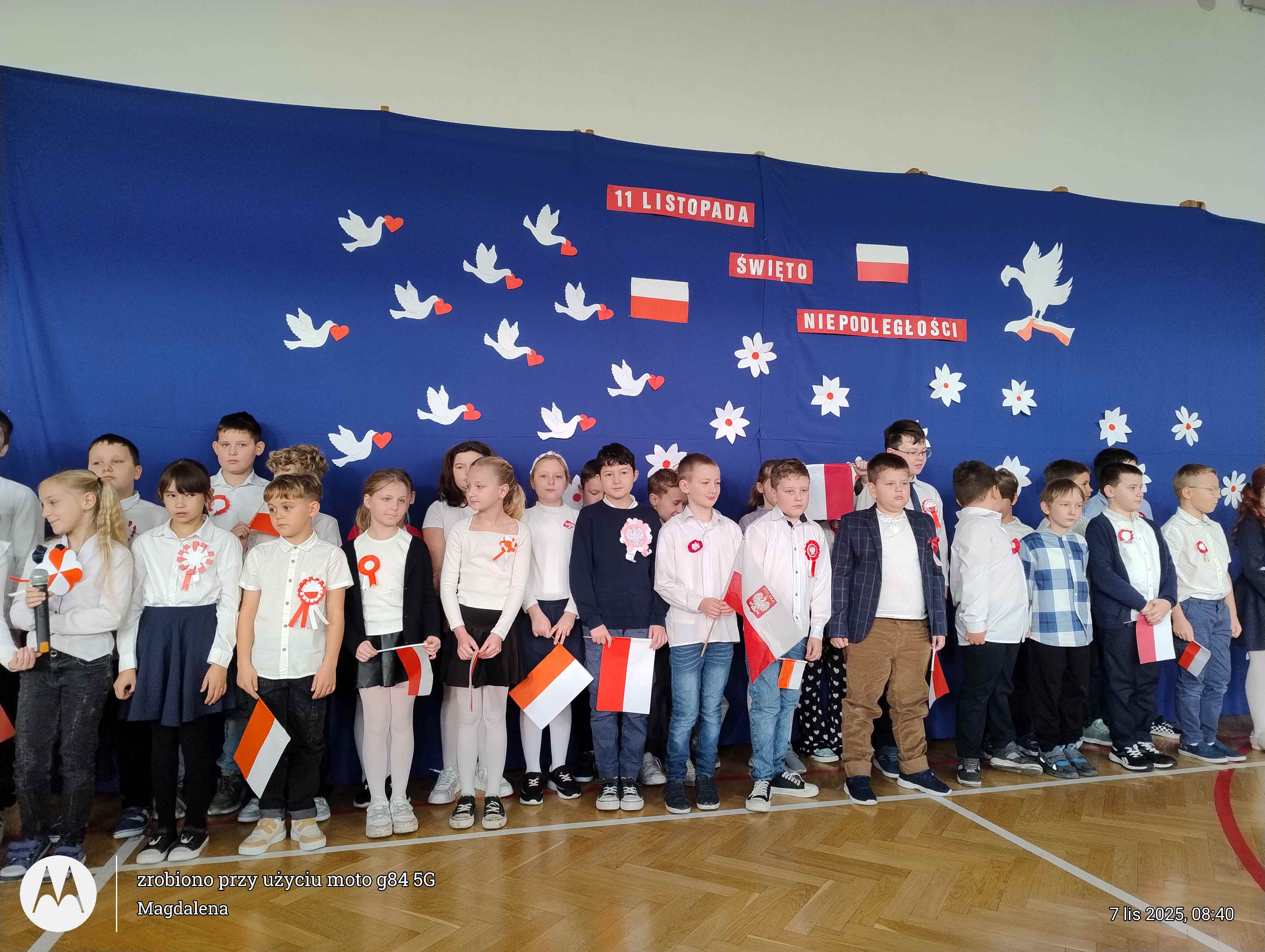 Wspólne odśpiewanie Mazurka Dąbrowskiego połączyło nas wszystkich uczniów, nauczycieli i gości – w jednym głosie dumy z bycia Polakami.