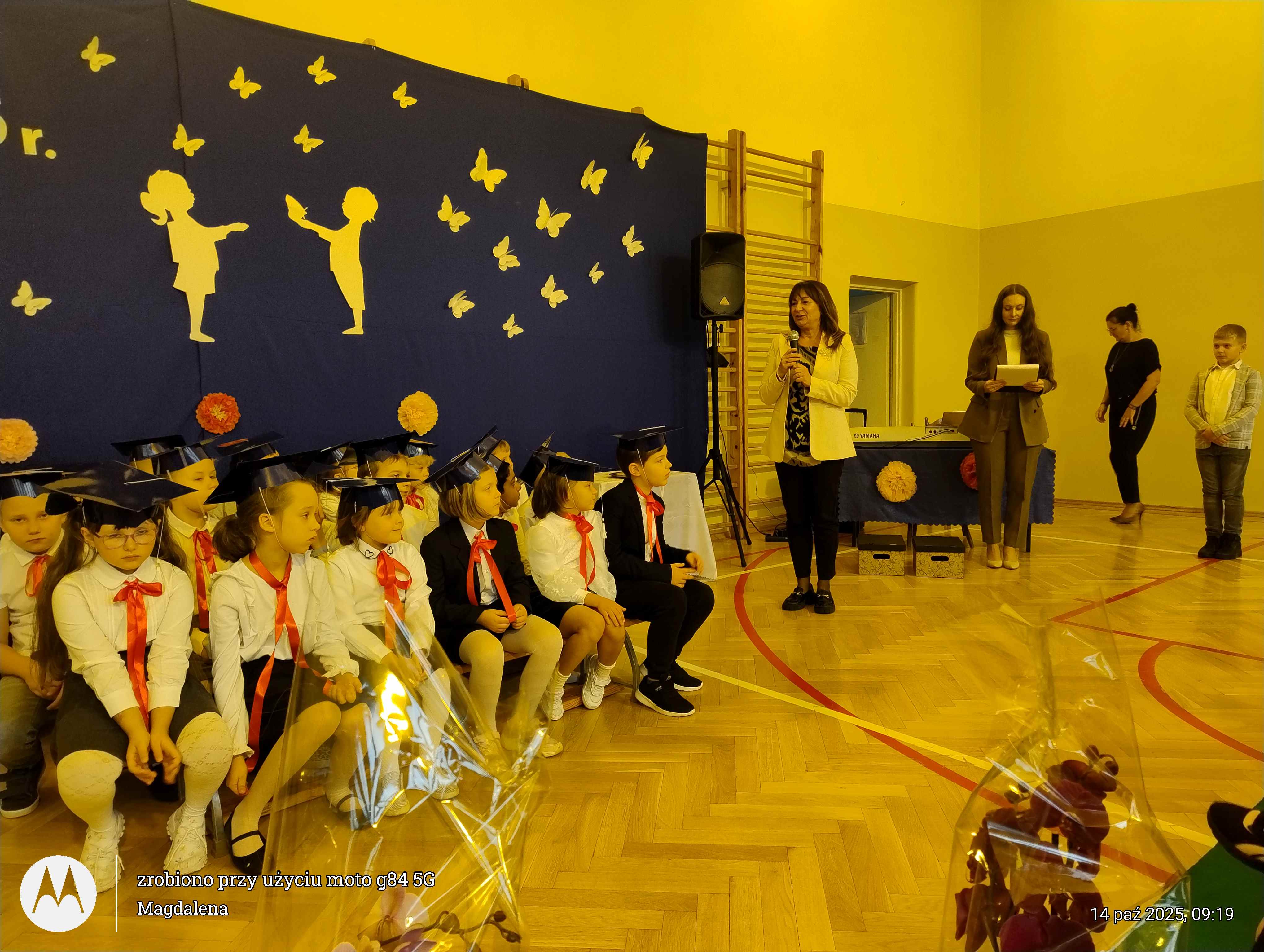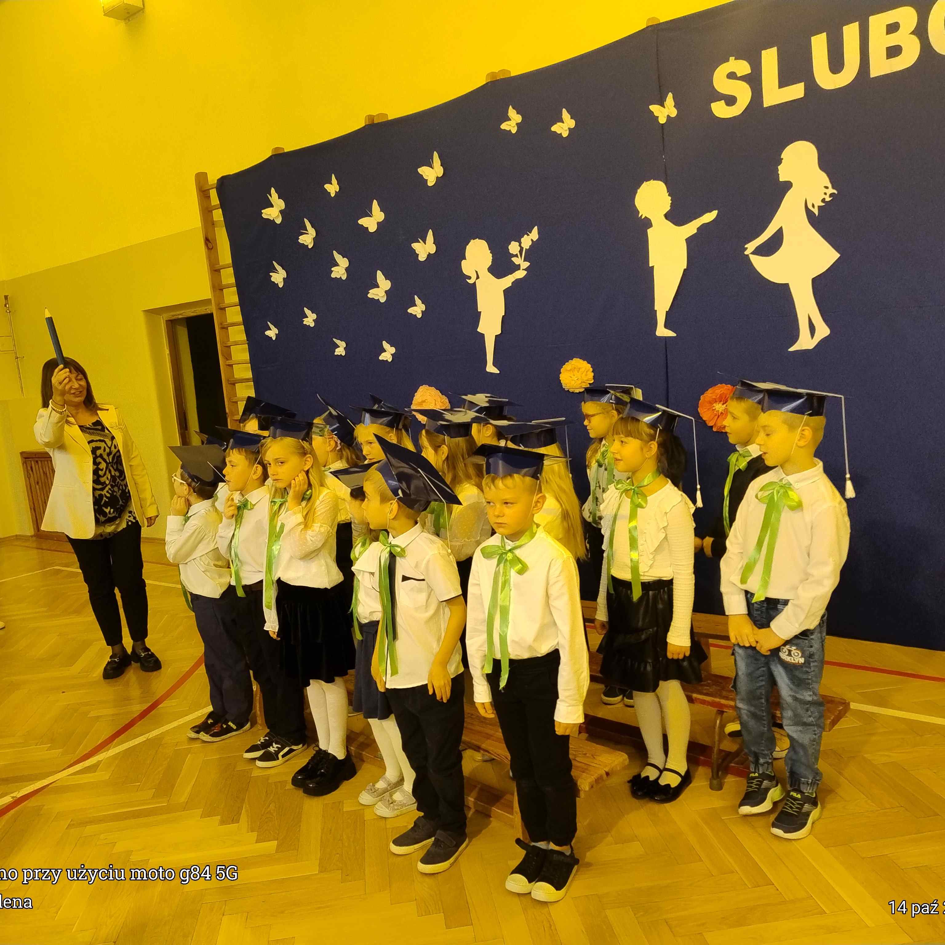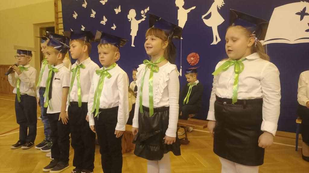 Radość, duma i wzruszenie towarzyszyły dzisiejszej uroczystości Ślubowania i Pasowania na Ucznia w naszej szkole. Z kultywowaniem pięknej szkolnej tradycji najmłodsi uczniowie złożyli uroczyste ślubowanie przed sztandarem szkoły, odśpiewali hymn narodowy i po raz pierwszy założyli galowe birety. Piękne stroje, dostojna oprawa i wzruszeni rodzice stworzyli wyjątkową atmosferę tego dnia.