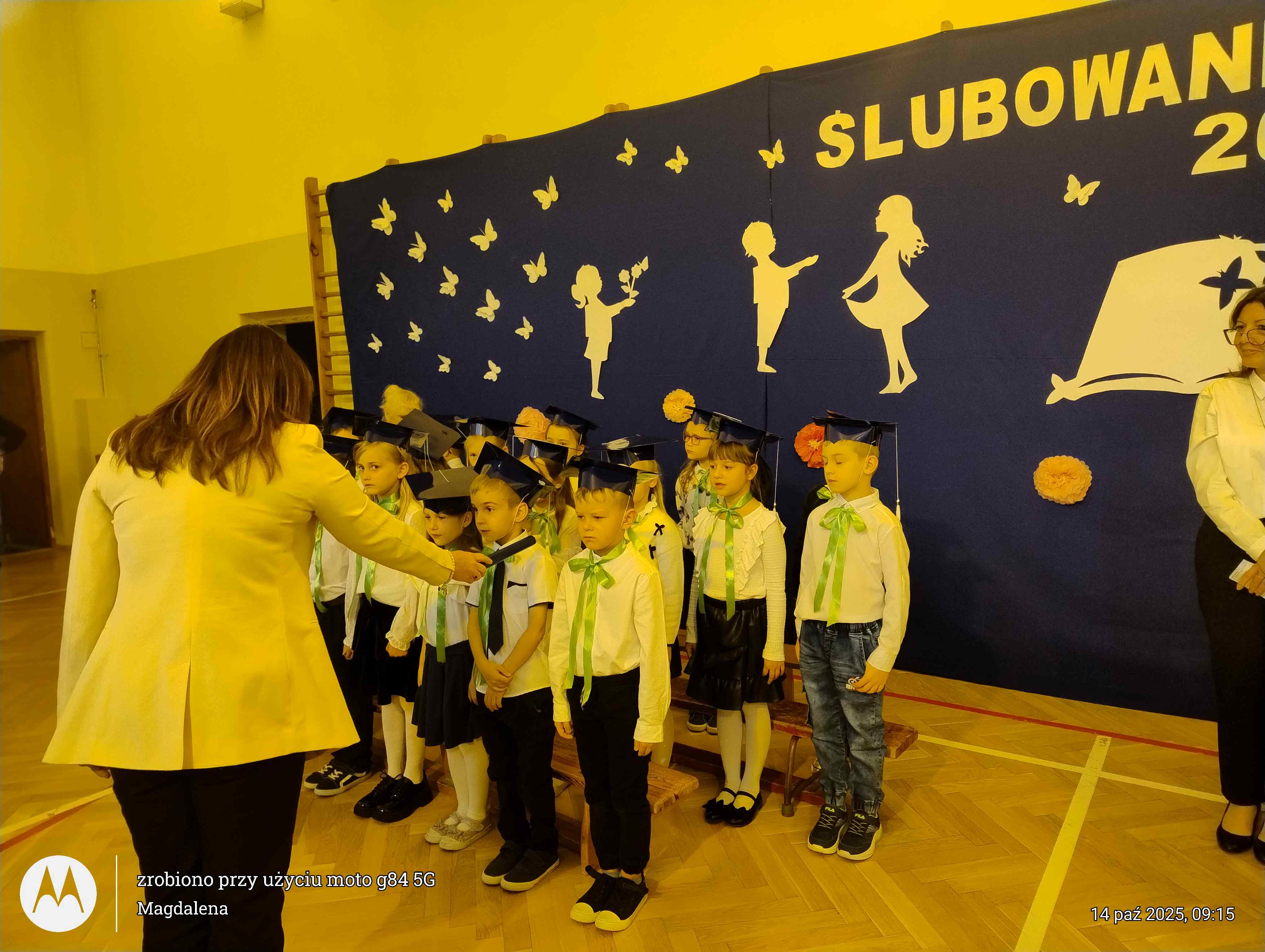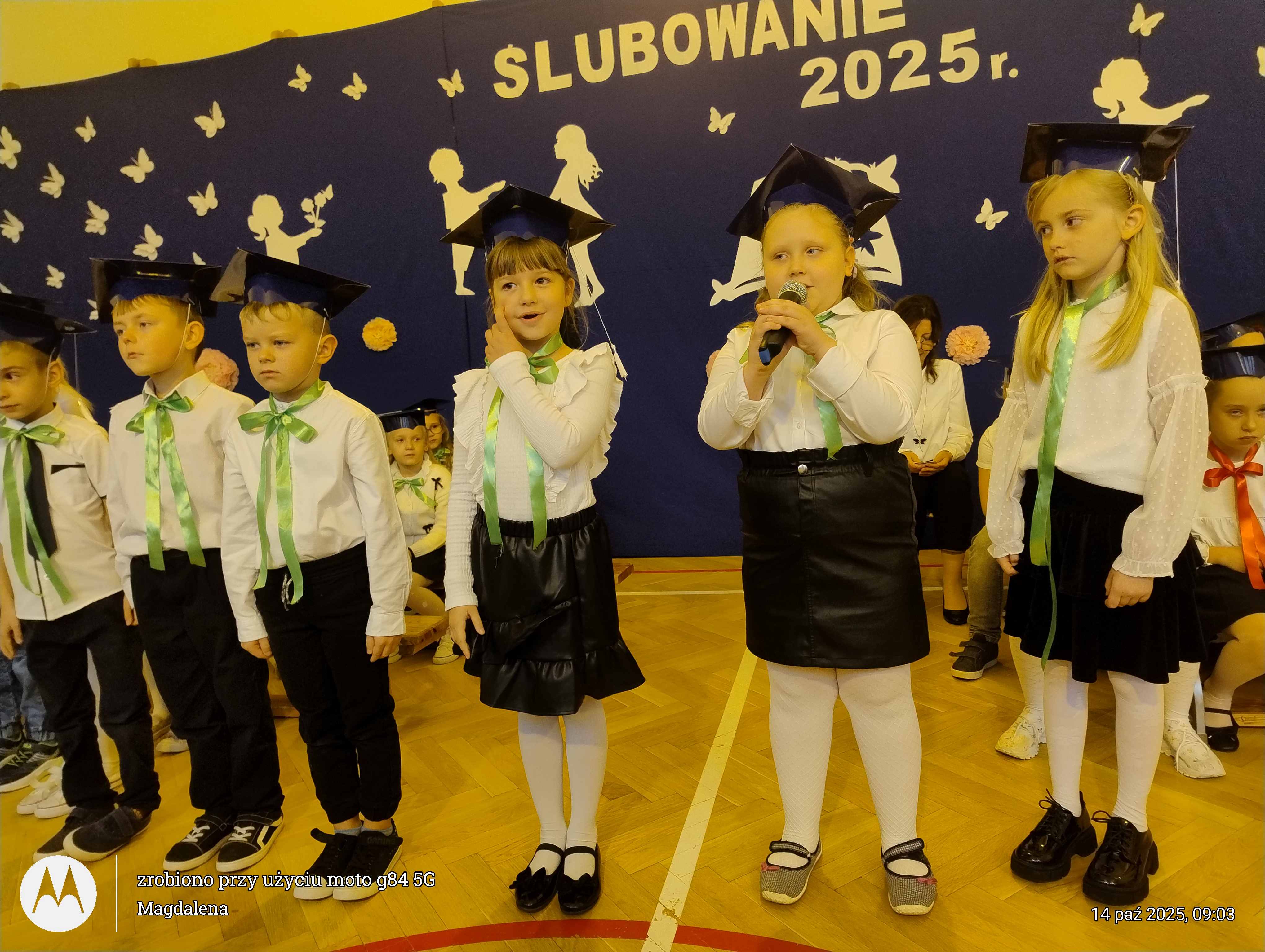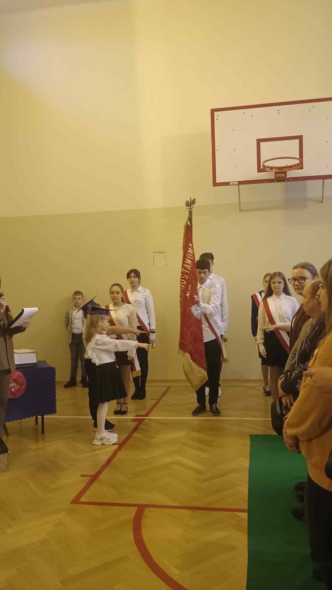 Radość, duma i wzruszenie towarzyszyły dzisiejszej uroczystości Ślubowania i Pasowania na Ucznia w naszej szkole. Z kultywowaniem pięknej szkolnej tradycji najmłodsi uczniowie złożyli uroczyste ślubowanie przed sztandarem szkoły, odśpiewali hymn narodowy i po raz pierwszy założyli galowe birety. Piękne stroje, dostojna oprawa i wzruszeni rodzice stworzyli wyjątkową atmosferę tego dnia.