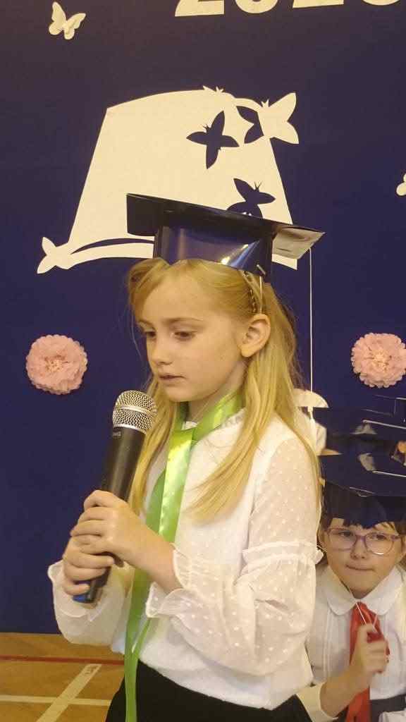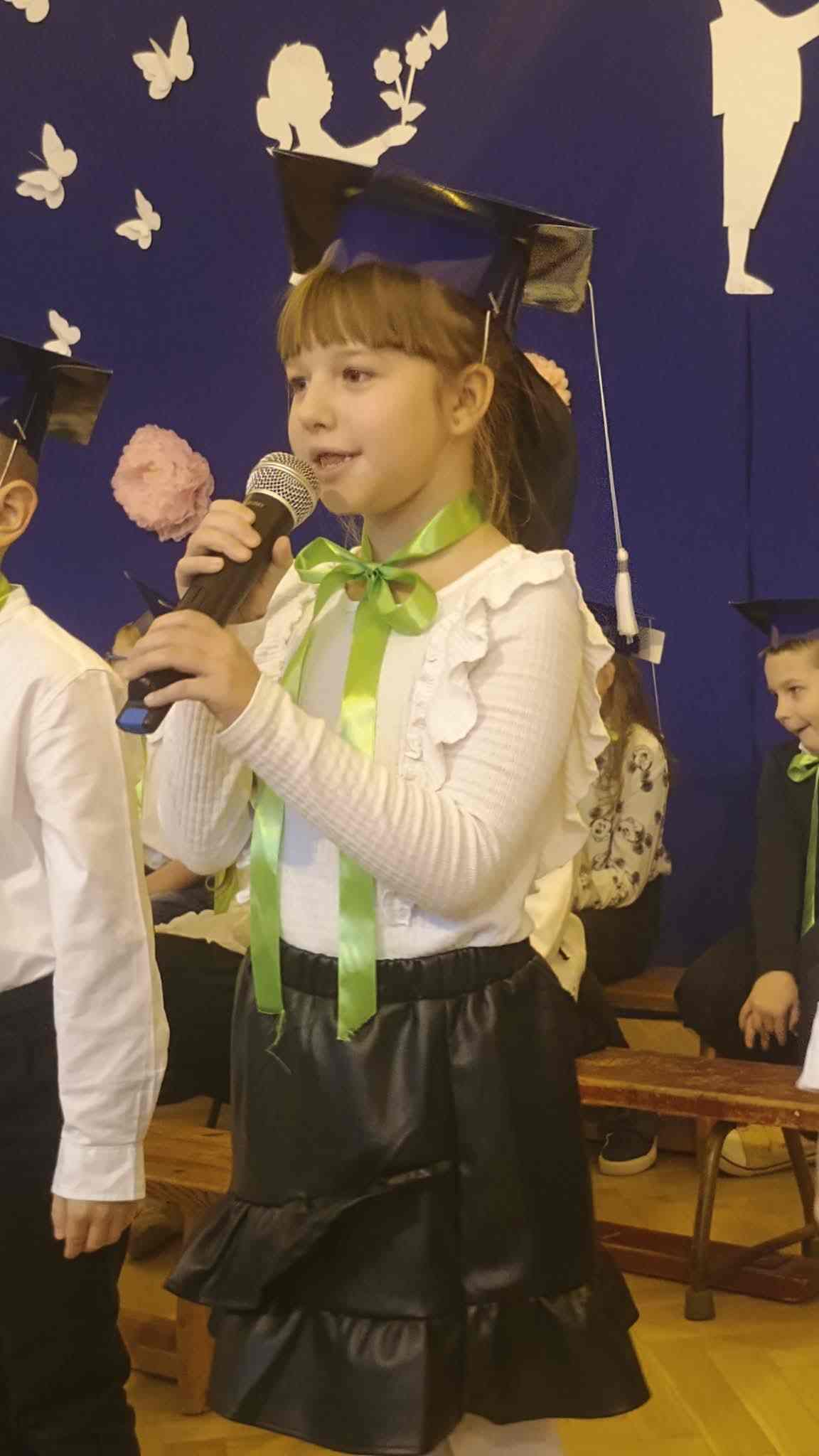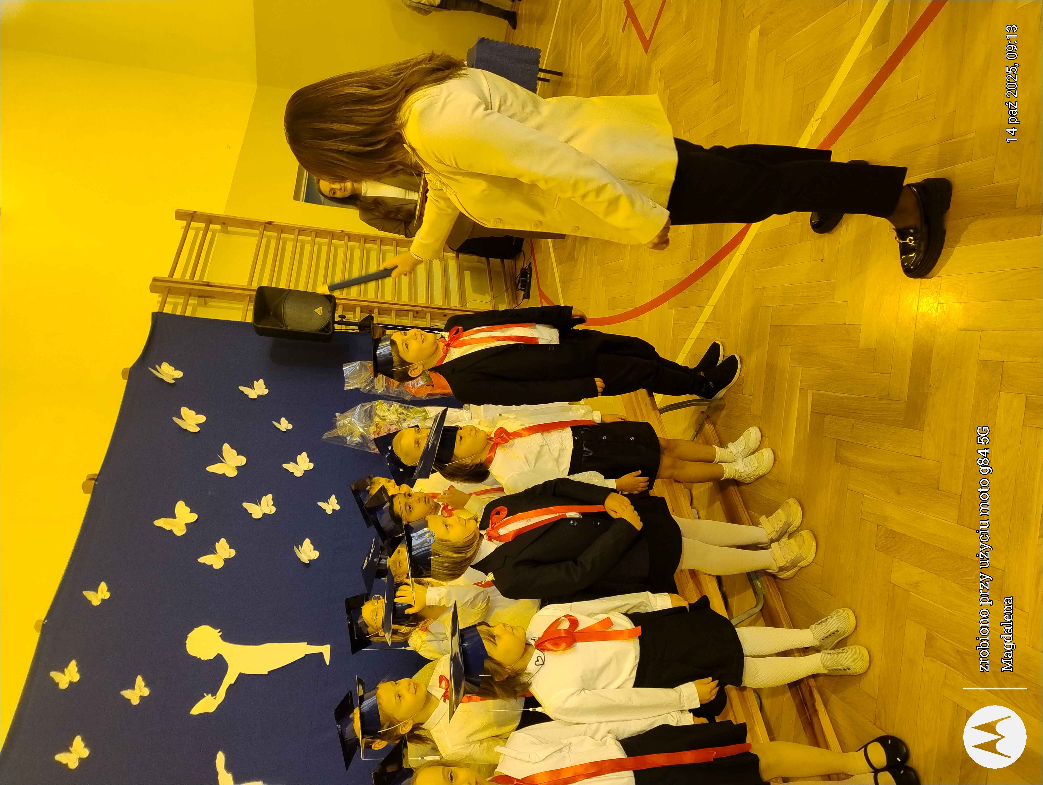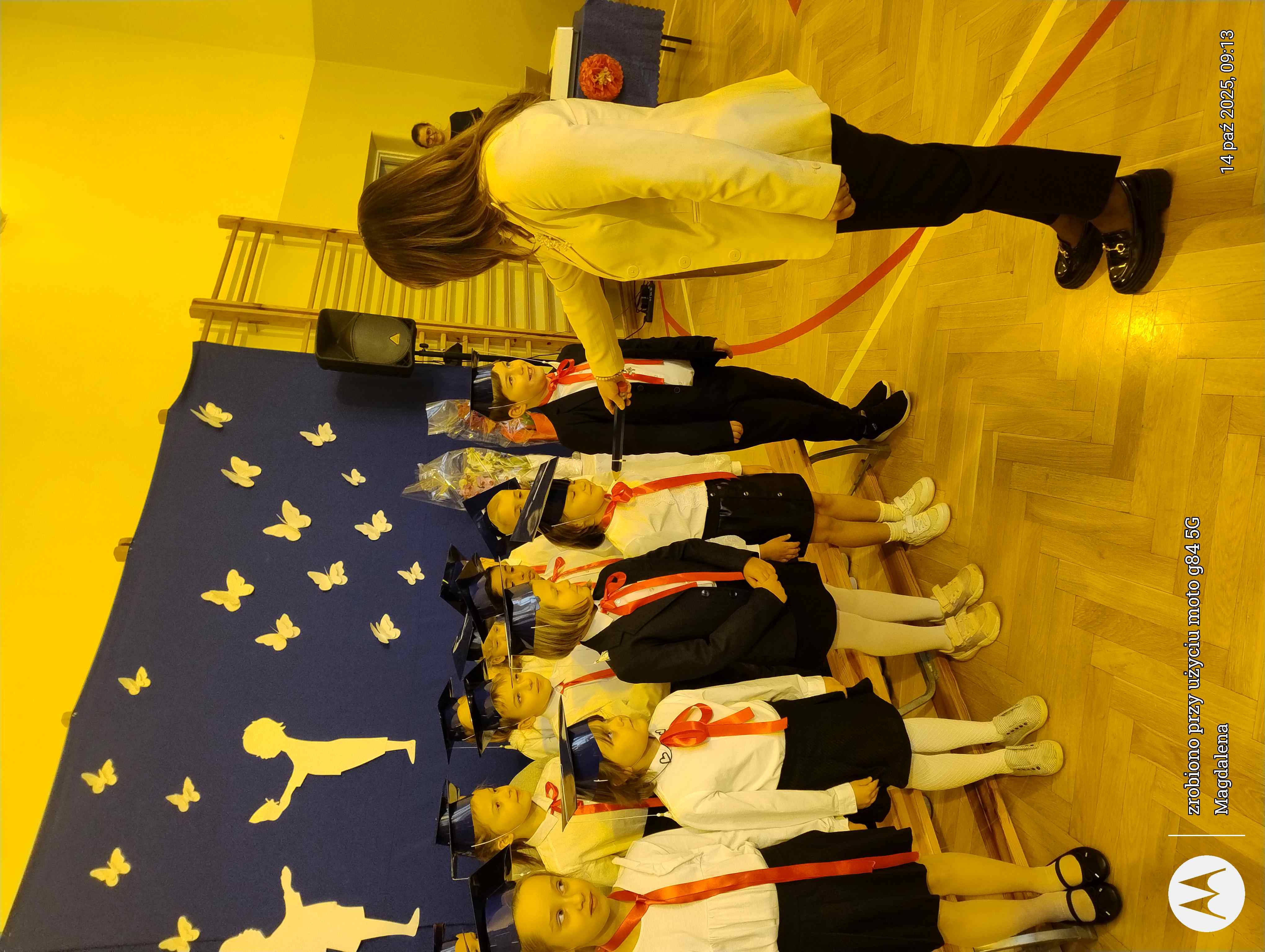 W swoim wystąpieniu Dyrektor Szkoły Małgorzata Tomaszewska przypomniała o znaczeniu nauki, o roli pierwszego nauczyciela w życiu każdego człowieka oraz o sile tradycji, która łączy się z nowoczesnością – jak w naszej szkole.