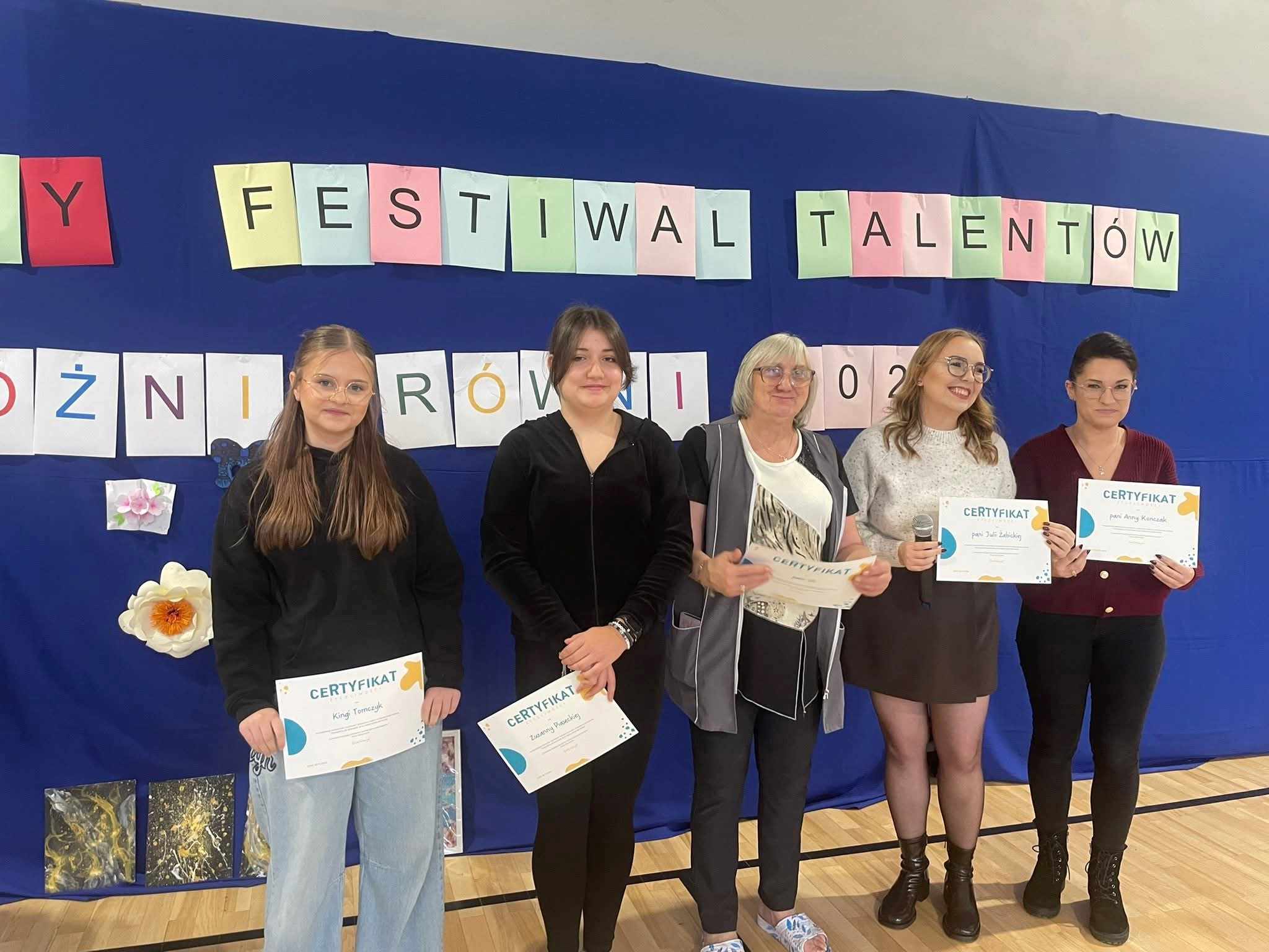 „Równi i różni” to hasło szkolnego Festiwalu Talentów, którego druga odsłona (dla klas starszych) zamknęła nasz Tydzień Tolerancji. Uczniowie stojedenastki tańczyli, śpiewali, recytowali własną poezję, robili biżuterię artystyczną i malowali pokazując w ten sposób swoje liczne talenty. Spotkanie było również okazją do wspólnej zabawy, ponieważ publiczność aktywnie włączyła się w sceniczne działania naszych artystów. Podczas spotkania zostały również rozdane dyplomy dla najżyczliwszych nauczycieli, pracowników i uczniów naszej szkoły.