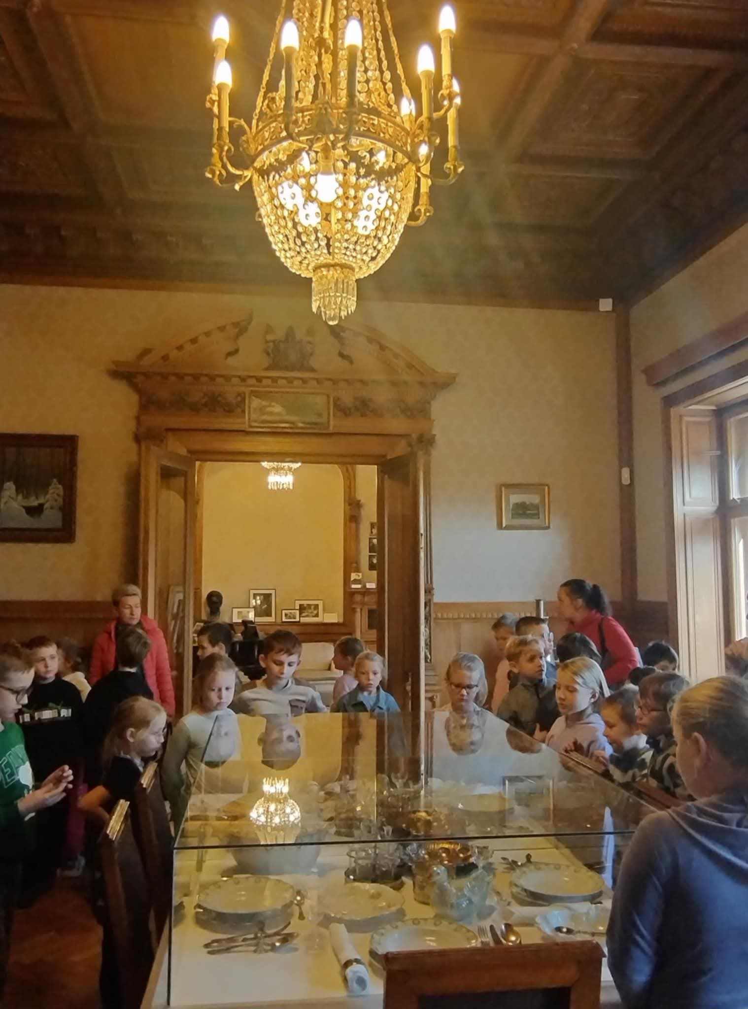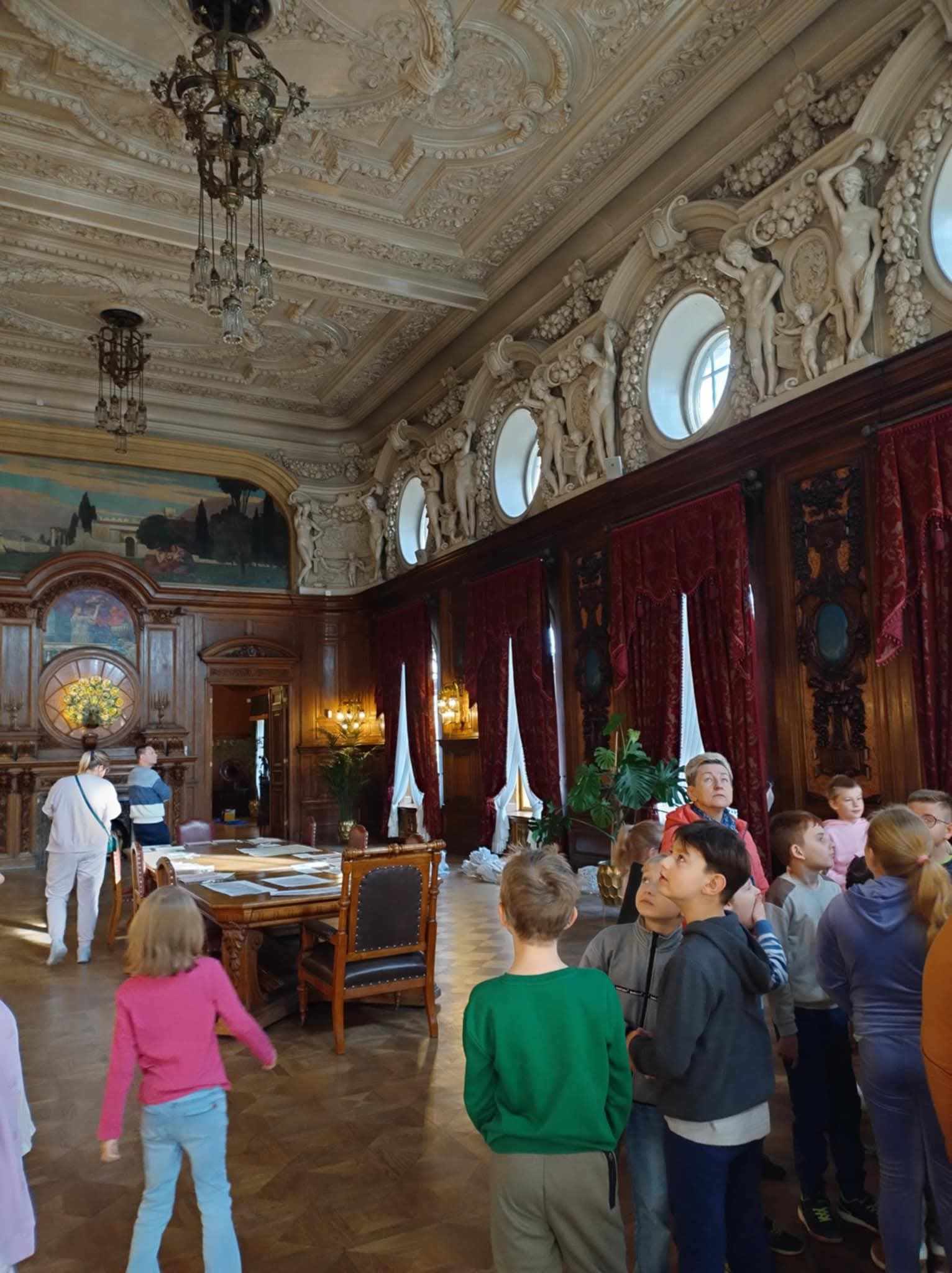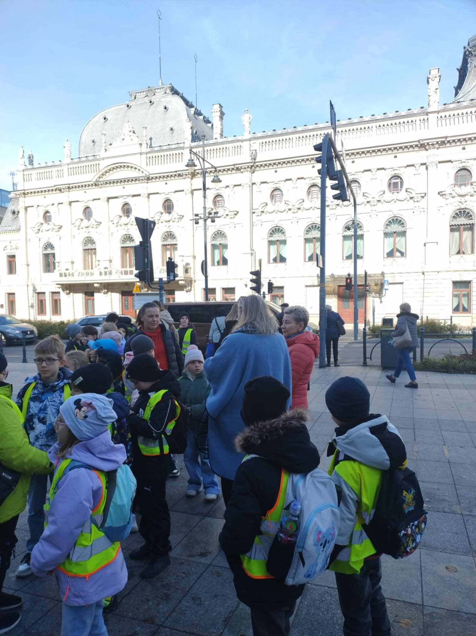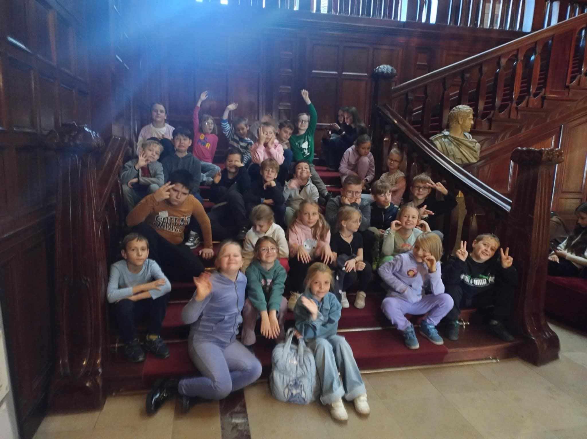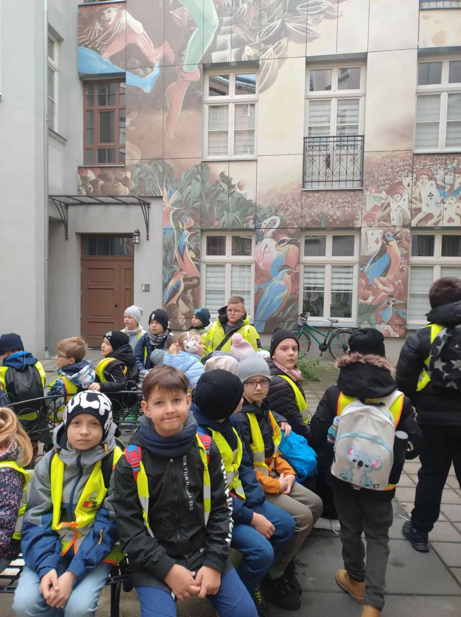 W dniu 23 października uczniowie klas 2a i 2b udali się na spacer z przewodnikiem p. Joanną Łabeńską szlakiem fabrykanckiej Łodzi. Podczas spaceru ulicą Piotrkowską poznali historię powstania muralu w podwórku przy Więckowskiego 4 oraz wysłuchali historii o chorej na raka oka Róży, dla której powstał pasaż ze szklanych odłamków przy Piotrkowskiej 3. Kolejnym punktem zwiedzania był Plac Wolności z postacią Tadeusza Kościuszki. Spacerując ulicą Nowomiejską, uczniowie dotarli do Parku Staromiejskiego, gdzie poznali historię nadania naszemu miastu praw miejskich i wysłuchali, dlaczego park nosi nazwę Śledzia. Następnie spacerowicze przeszli do Pałacu Izraela Poznańskiego. Tam słuchając opowieści przewodniczki, podziwiali oryginalne wnętrza, w tym: imponującą jadalnię, salę balową i pięknie zdobioną klatkę schodową. Zwiedzili także gabinet Izraela Poznańskiego, gdzie oglądali jego portret, biurko z dawnymi przedmiotami biurowymi oraz narzędziami pracy fabrykanta.