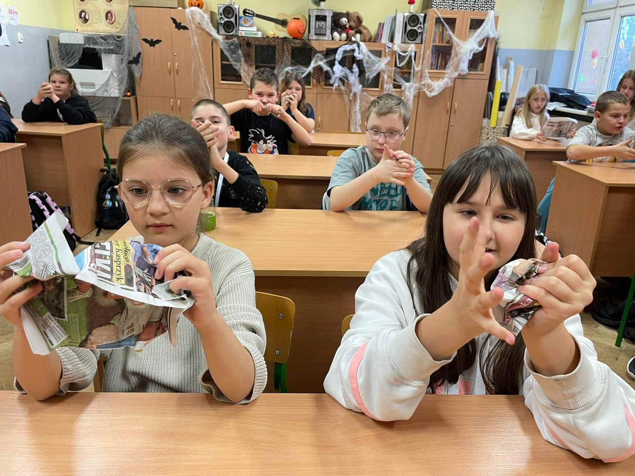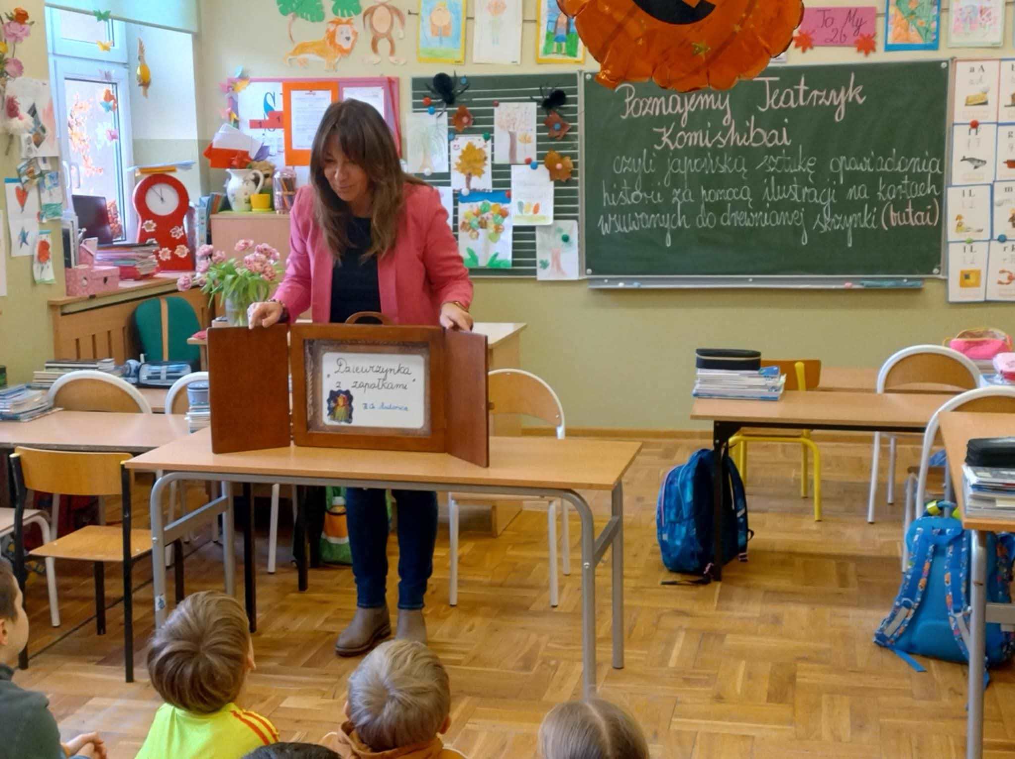 Najmłodsi uczniowie obejrzeli baśń Hansa Christiana Andersena „Dziewczynka z zapałkami” w formie teatrzyku kamishibai. Spotkanie poprowadziła pani Małgorzata Tomaszewska, a poruszająca opowieść uwrażliwiła dzieci na potrzeby drugiego człowieka, wzmocniła postawy empatii i otwartości oraz pokazała, jak ważne jest reagowanie na cierpienie i samotność innych.