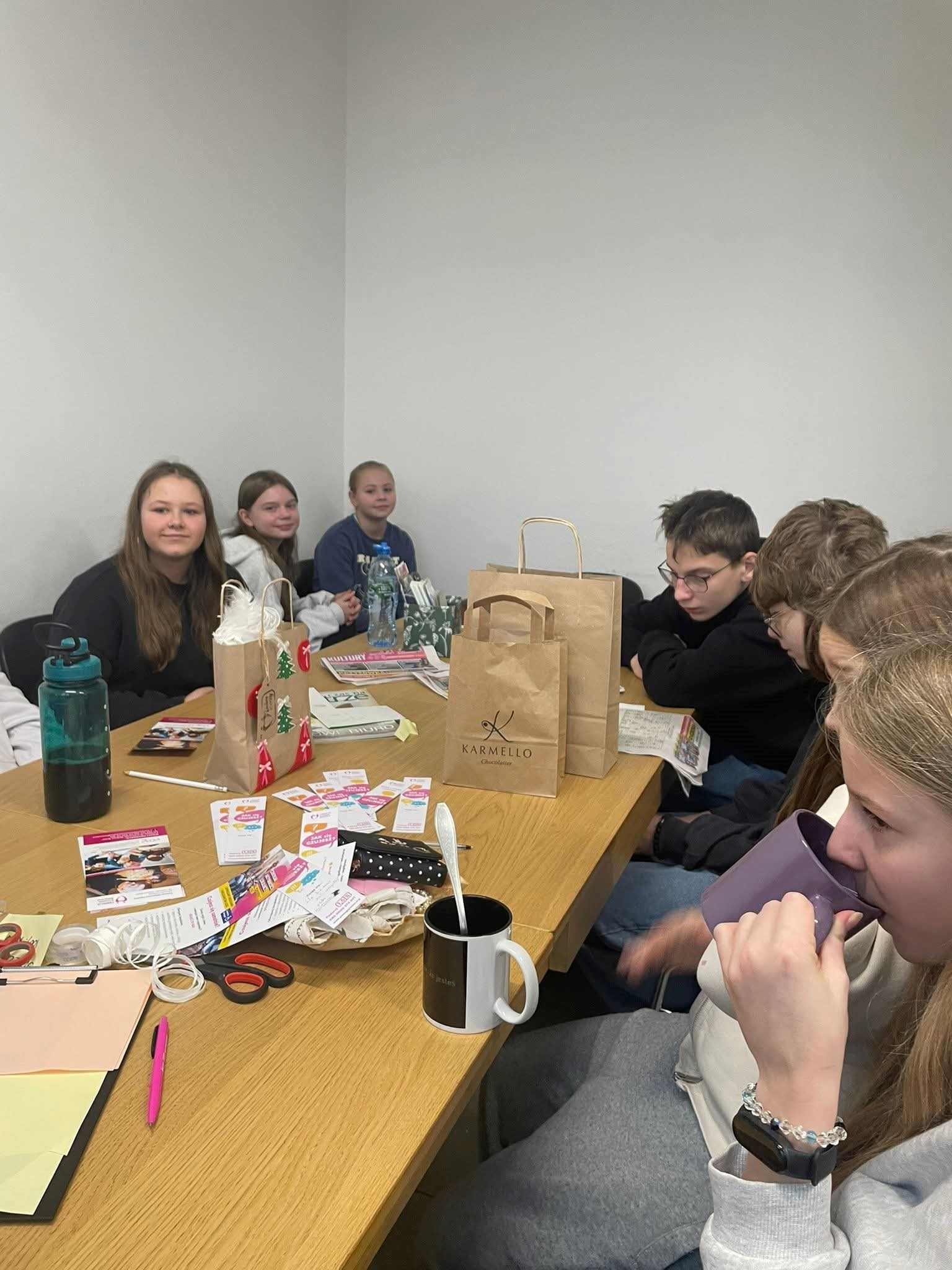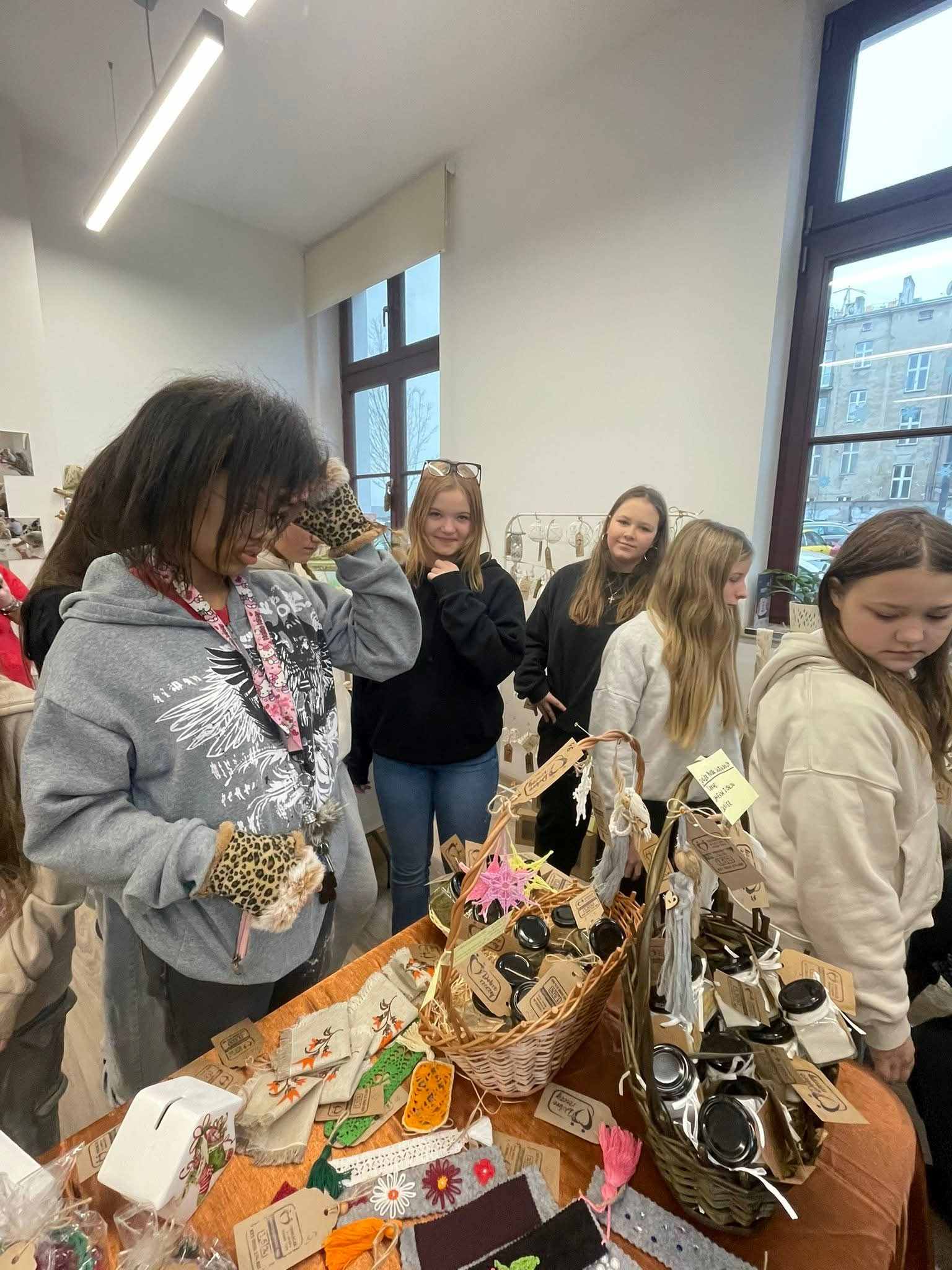 Misternie wykonana biżuteria, świąteczne ozdoby, piękne obrazy, fartuszki, serwetki, poszewki i wiele, wiele innych rzeczy klasa 6b podziwiała w Centrum Aktywności Lokalnej. Na świątecznym kiermaszu wystawiono rękodzieło seniorów, podopiecznych Fundacji „W człowieku widzieć brata”. Dla naszych uczniów spotkanie było również okazją do rozmów z seniorami i wspólnej herbatki w świątecznej atmosferze.