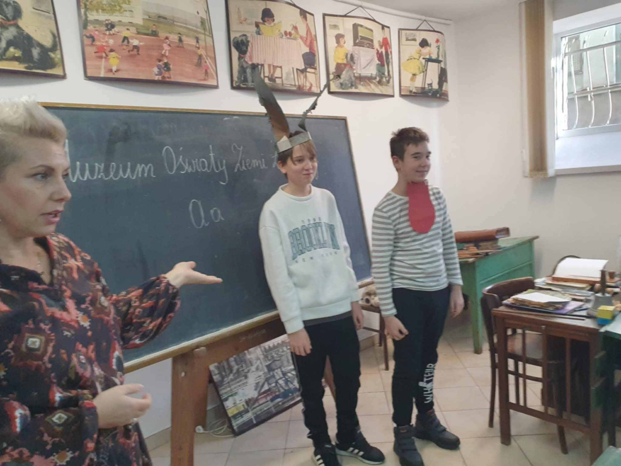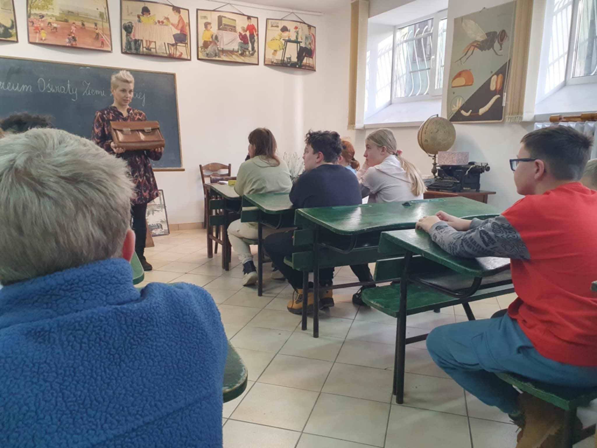 Uczniowie klasy 5a wybrali się do Muzeum Oświaty Ziemi Łódzkiej przy ul. Wólczańskiej. Podczas lekcji muzealnej prowadzonej w specjalnie zaaranżowanej klasie, uczniowie przenieśli się w czasie i poznali zwyczaje i zasady panujące w dawnej szkole. Stara temperówka, kalka, ryga, kałamarz, gęsie pióro to tylko niektóre z licznych eksponatów, które uczniowie mogli obejrzeć i podpatrzeć do czego służyły.