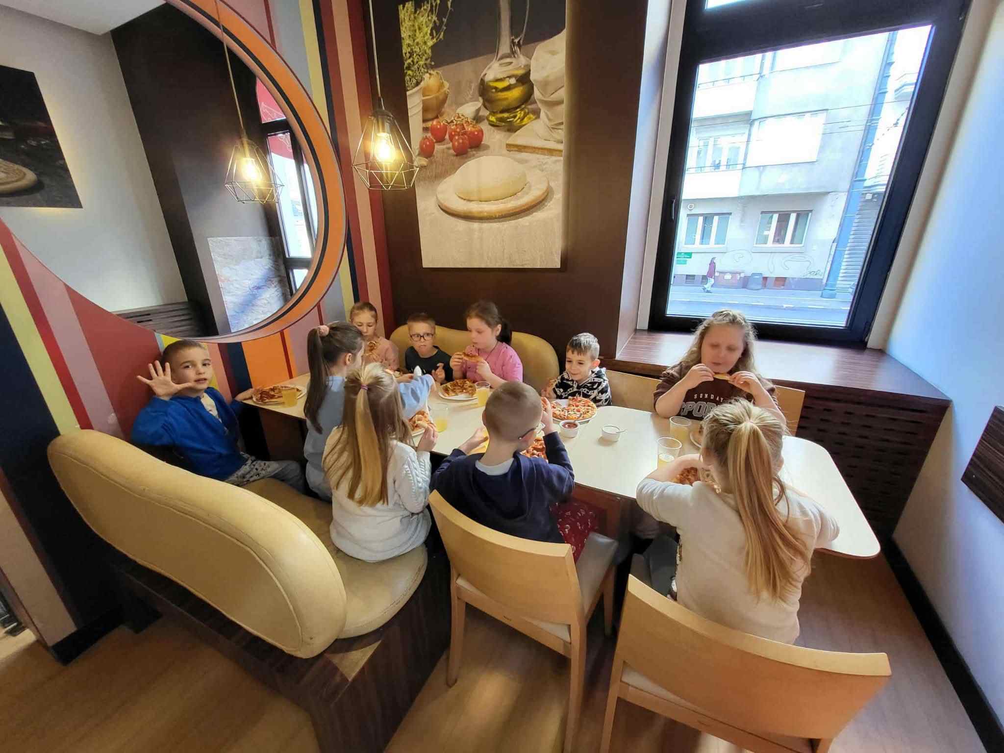 19 listopada uczniowie 1a uczestniczyli w wyjątkowych warsztatach kulinarnych w pizzerii. Dzieci samodzielnie przygotowały swoje pizze - wybierały ulubione składniki, a następnie wspólnie zasiadały do stołu, by skosztować efektów swojej pracy. Była to radosna, integrująca aktywność, a jednocześnie doskonała okazja do utrwalenia zasad kulturalnego zachowania się przy stole i rozwijania umiejętności savoir vivre'u .