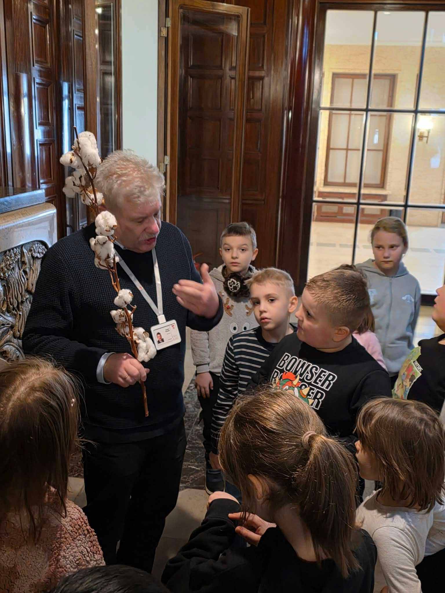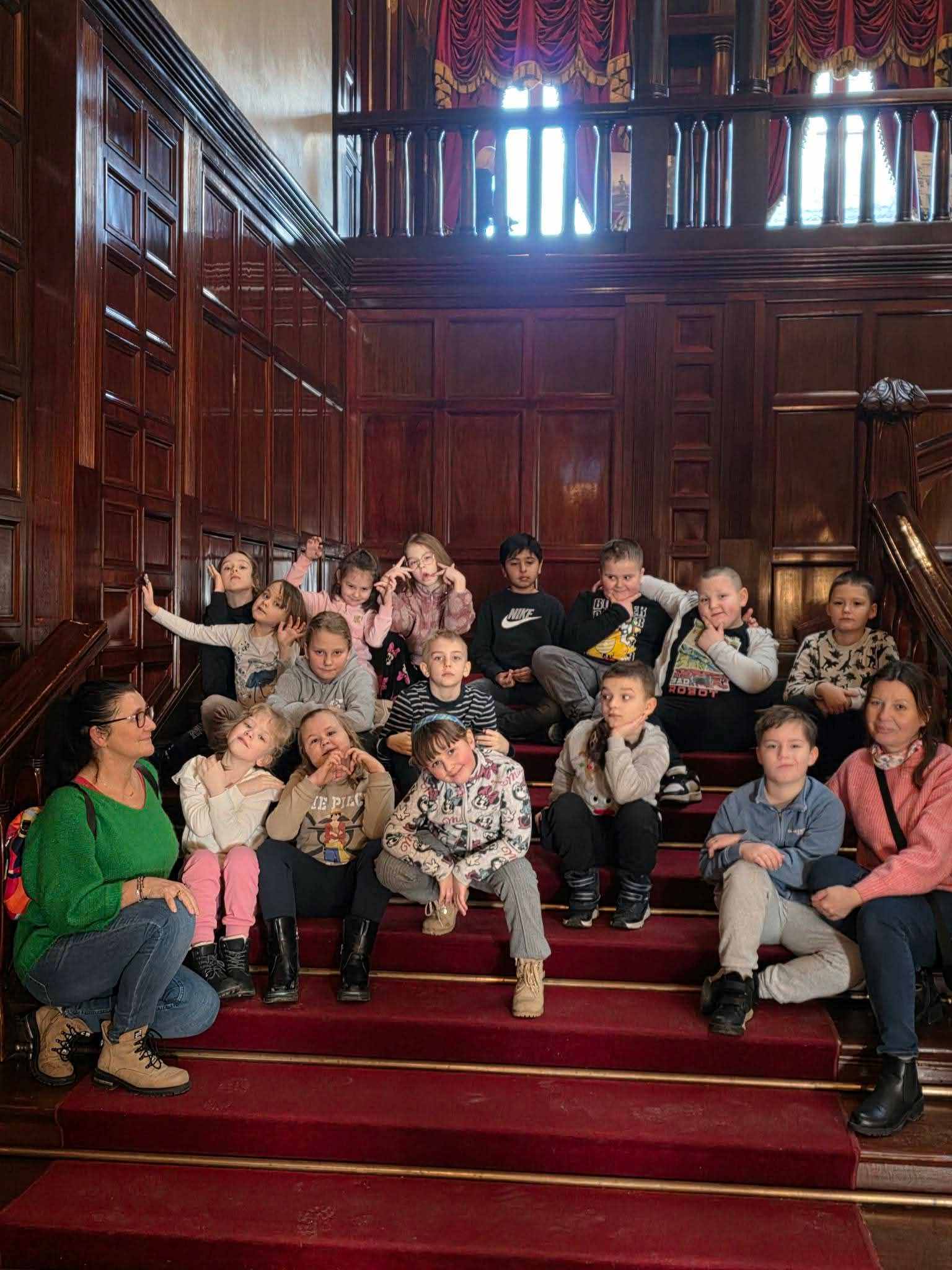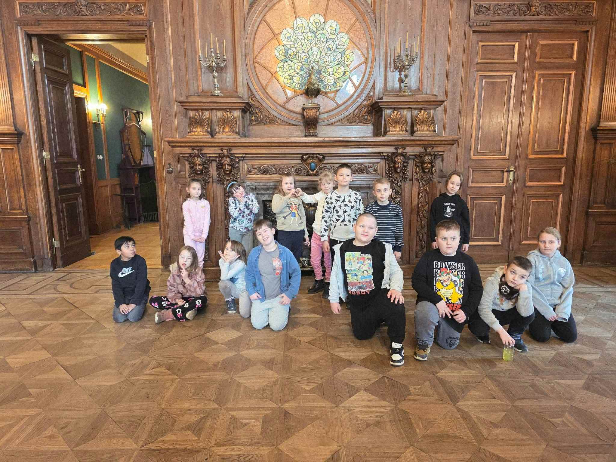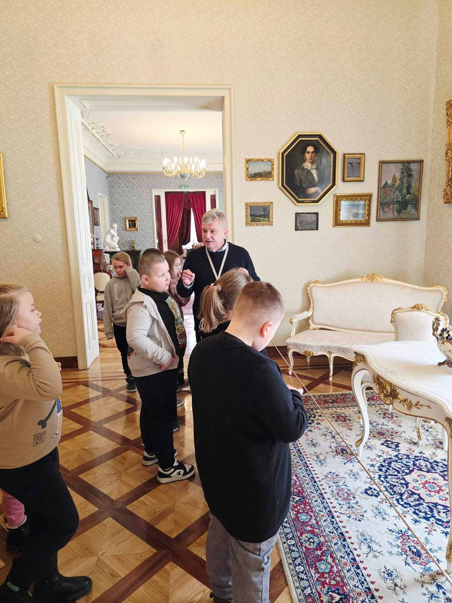 Już od progu zachwyciły nas piękne sale balowe i bogato zdobione wnętrza, które pozwoliły nam poczuć atmosferę dawnej Łodzi. Naszym przewodnikiem był pan Cezary, który od pierwszej minuty złapał świetny kontakt z dziećmi. Z wielką pasją i w sposób niezwykle przystępny dla najmłodszych opowiadał o historii zabytków oraz dawnych mieszkańcach pałacu. Dzieci słuchały go z zapartym tchem!