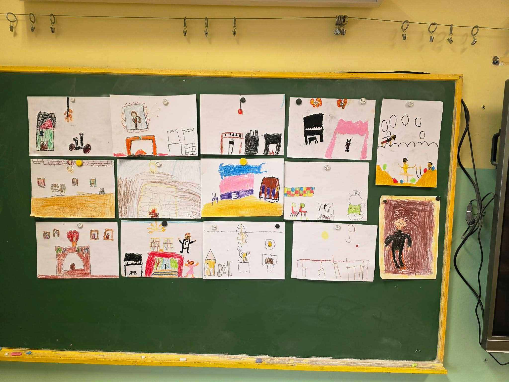 To jednak nie był koniec przygody. Po powrocie do szkoły emocje wciąż były żywe, co nasi mali artyści przelali na papier. Powstały przepiękne rysunki dokumentujące najciekawsze momenty wycieczki, które zdobią teraz naszą salę.
